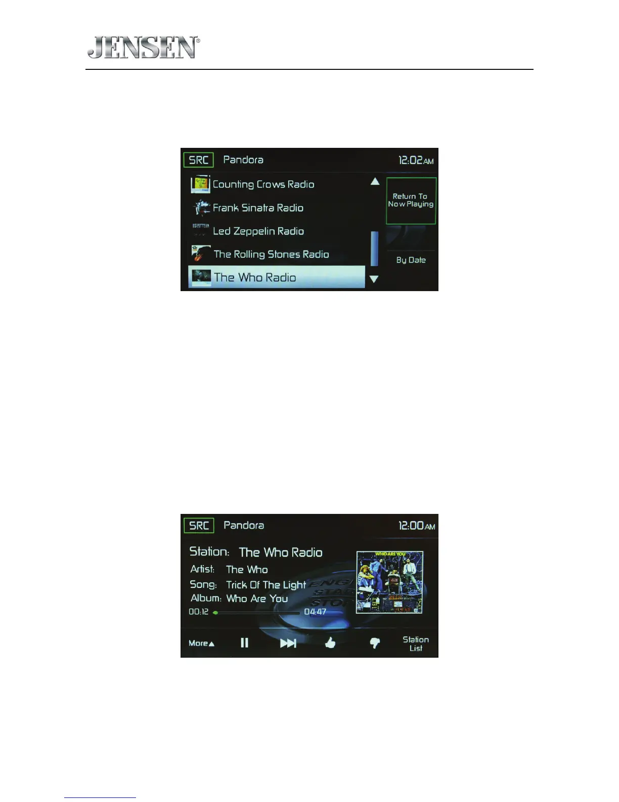 Touch the Return to Now Playing icon to return to the Pandora Radio user
