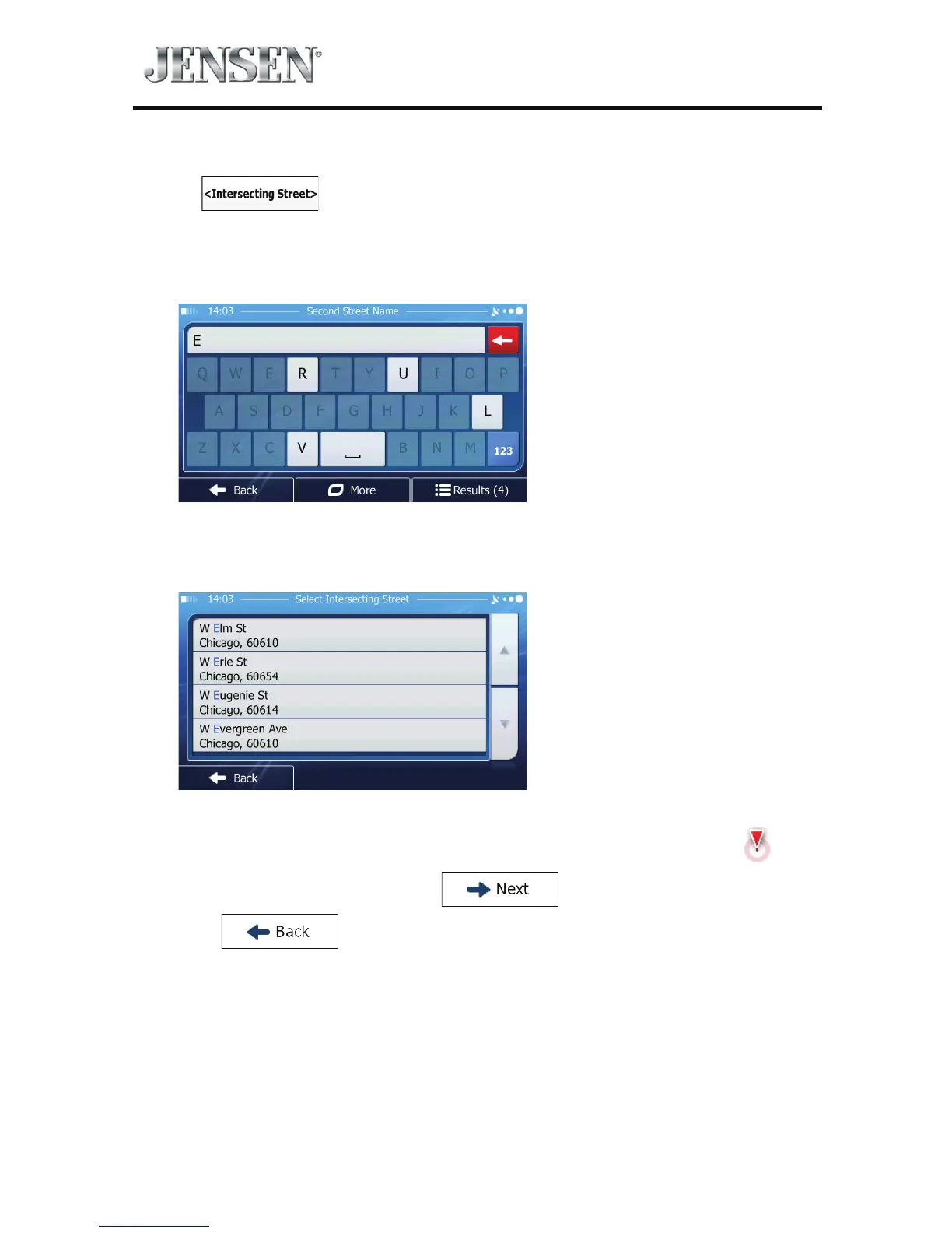 name of the intersecting street on the keyboard.