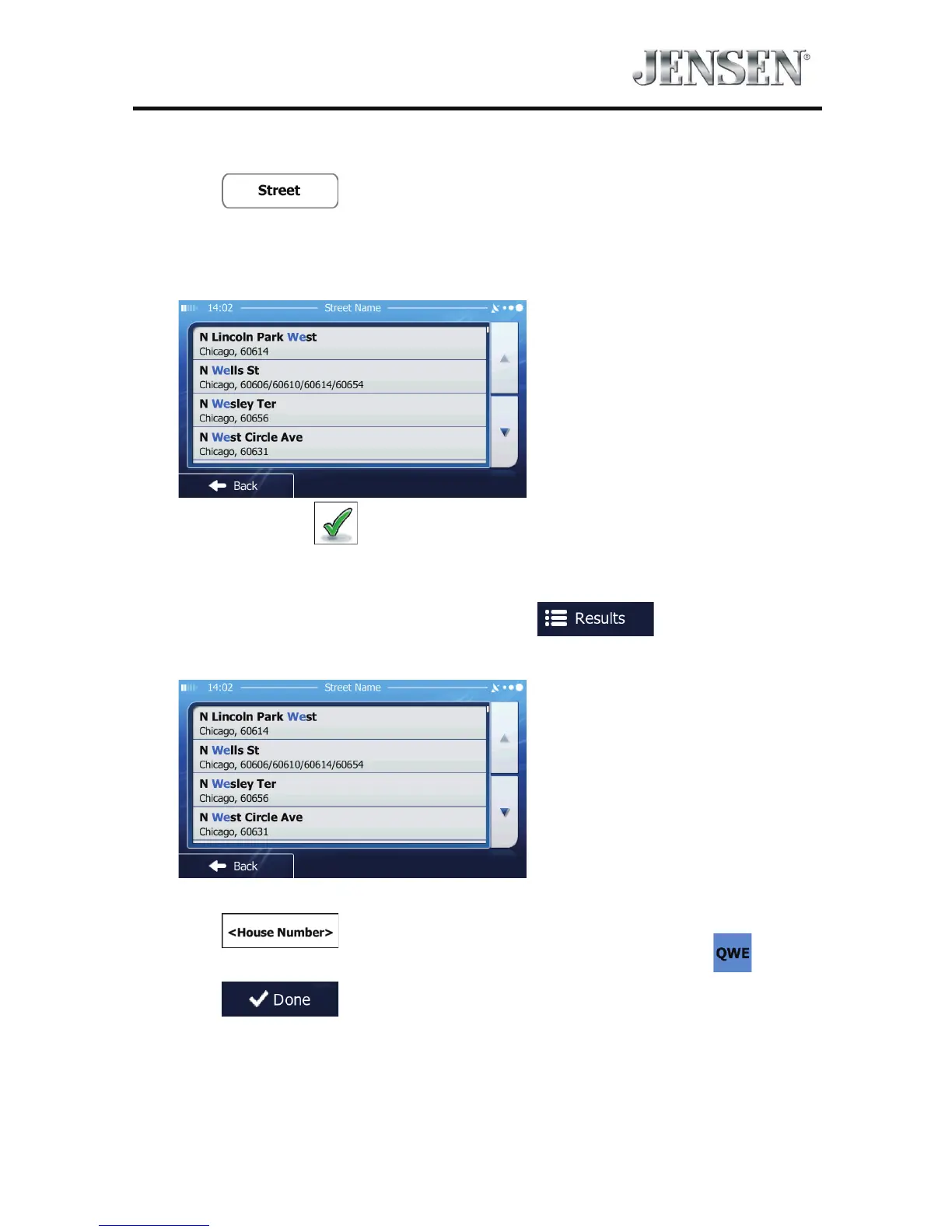 b. Start entering the street name on the keyboard.