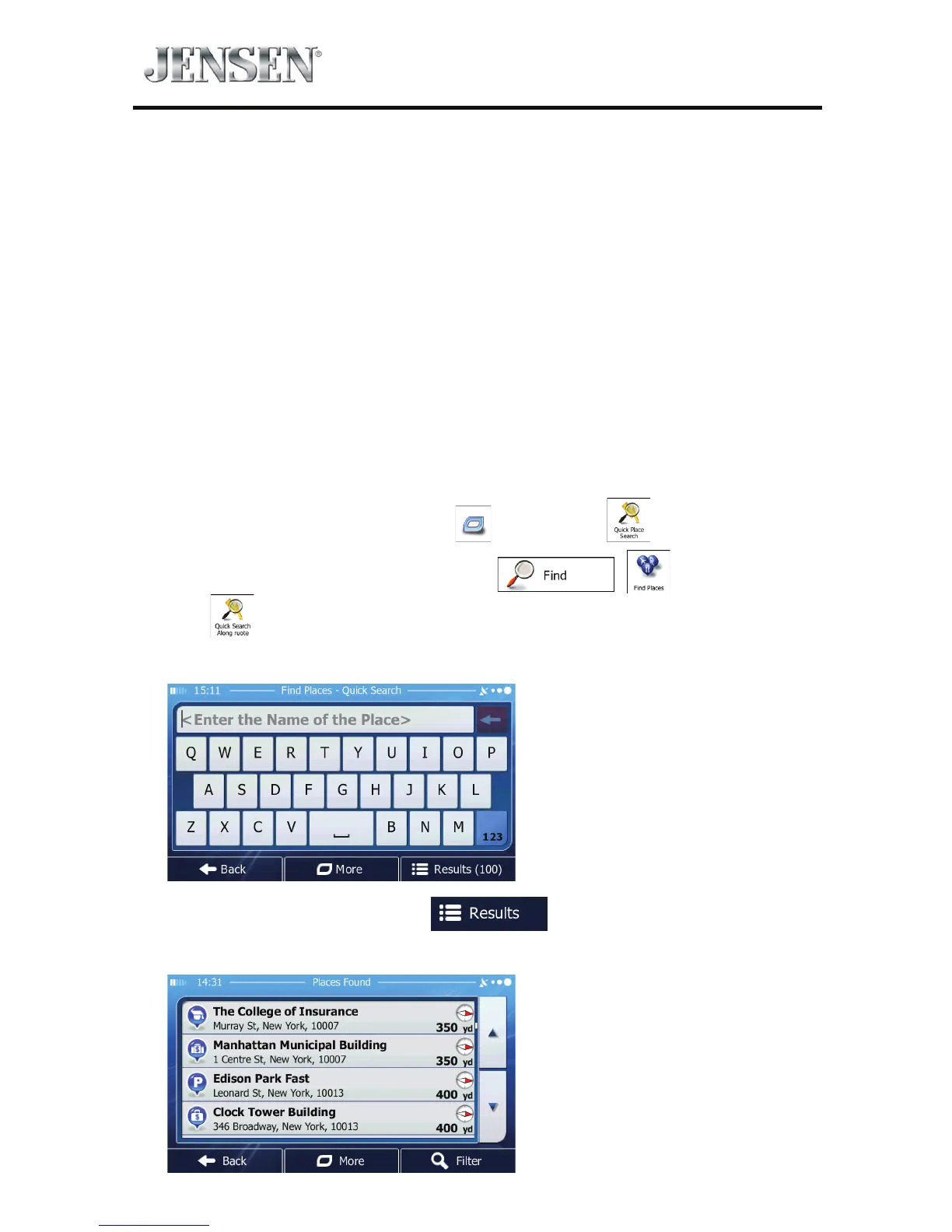 t with the Quick search feature, you can quickly nd a nearby Place by its name
