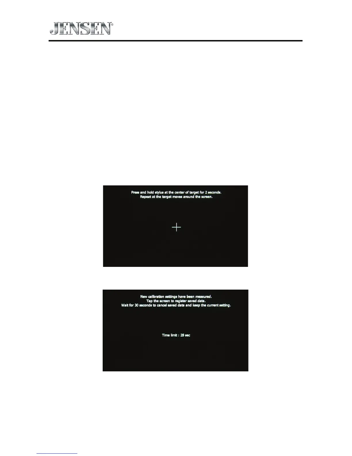 4. If the screen is touched, the new calibration parameters will be accepted. If