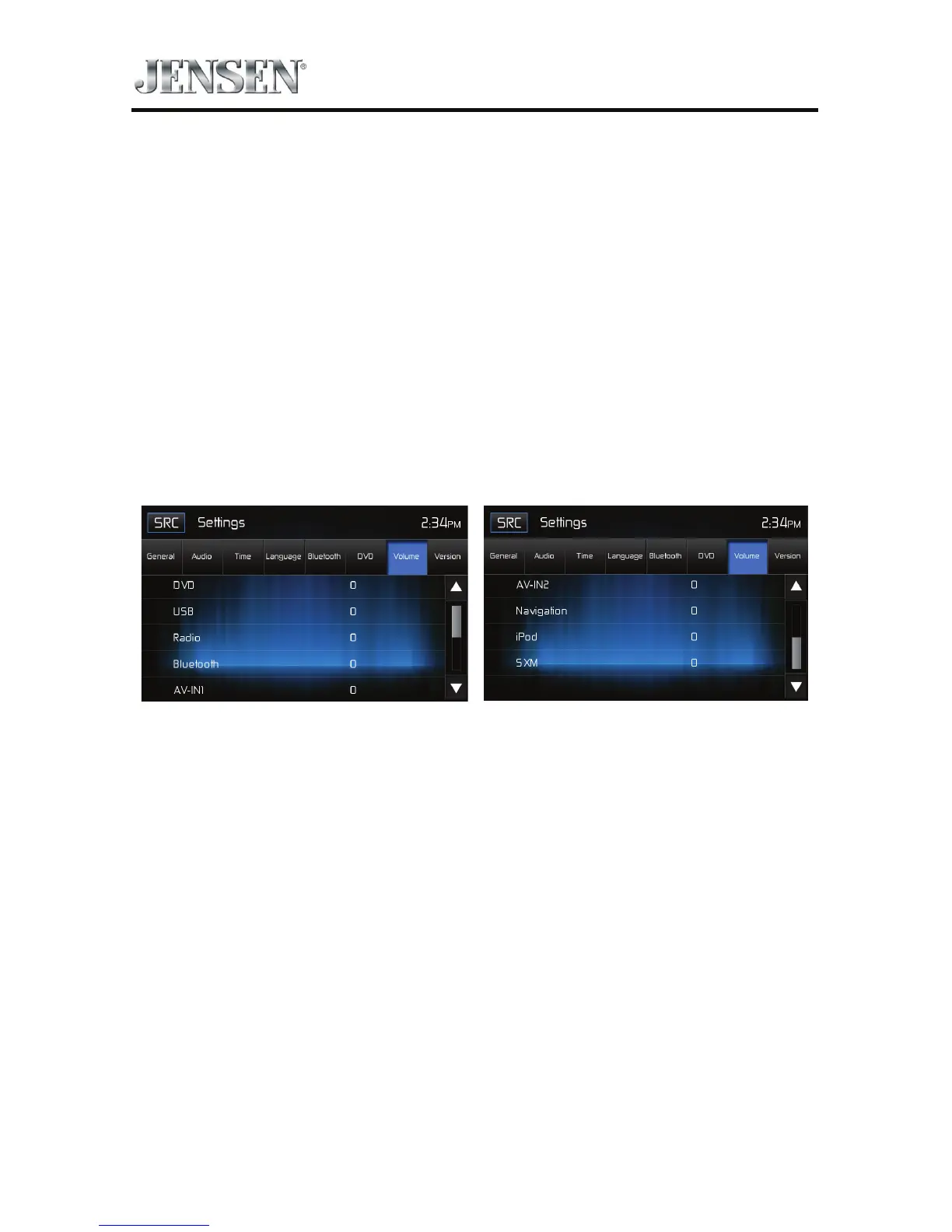 Volume Sub-menu Screens