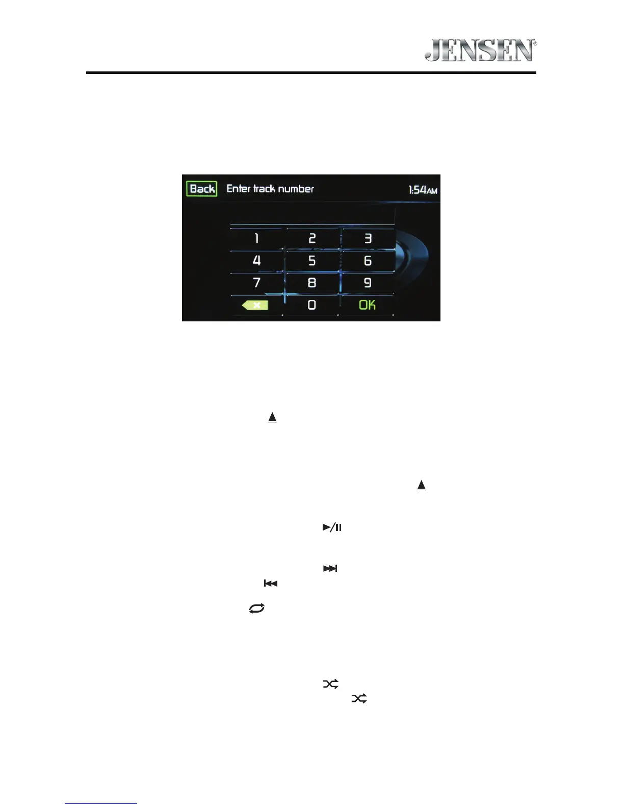 entering the track numbers touch the OK icon. If a wrong digit is entered touching