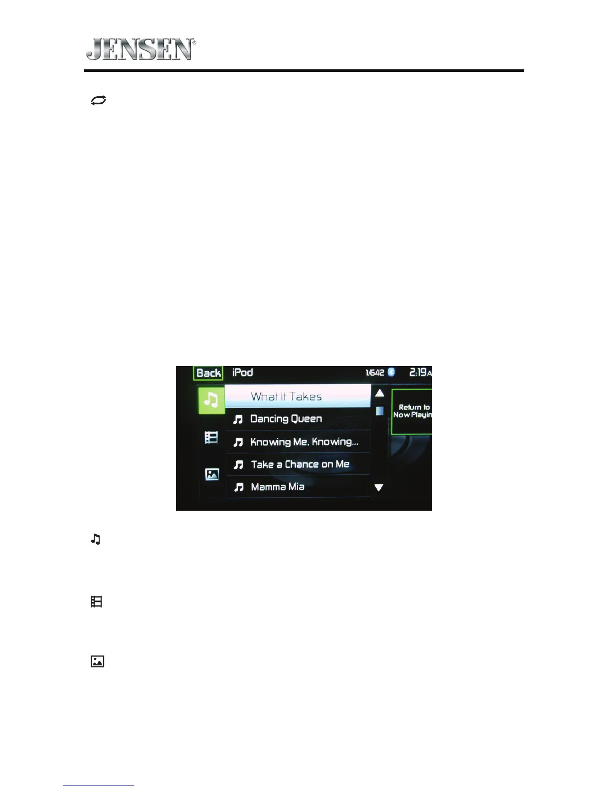 ( ) Repeat - In audio mode touch this icon to repeat playback of the current