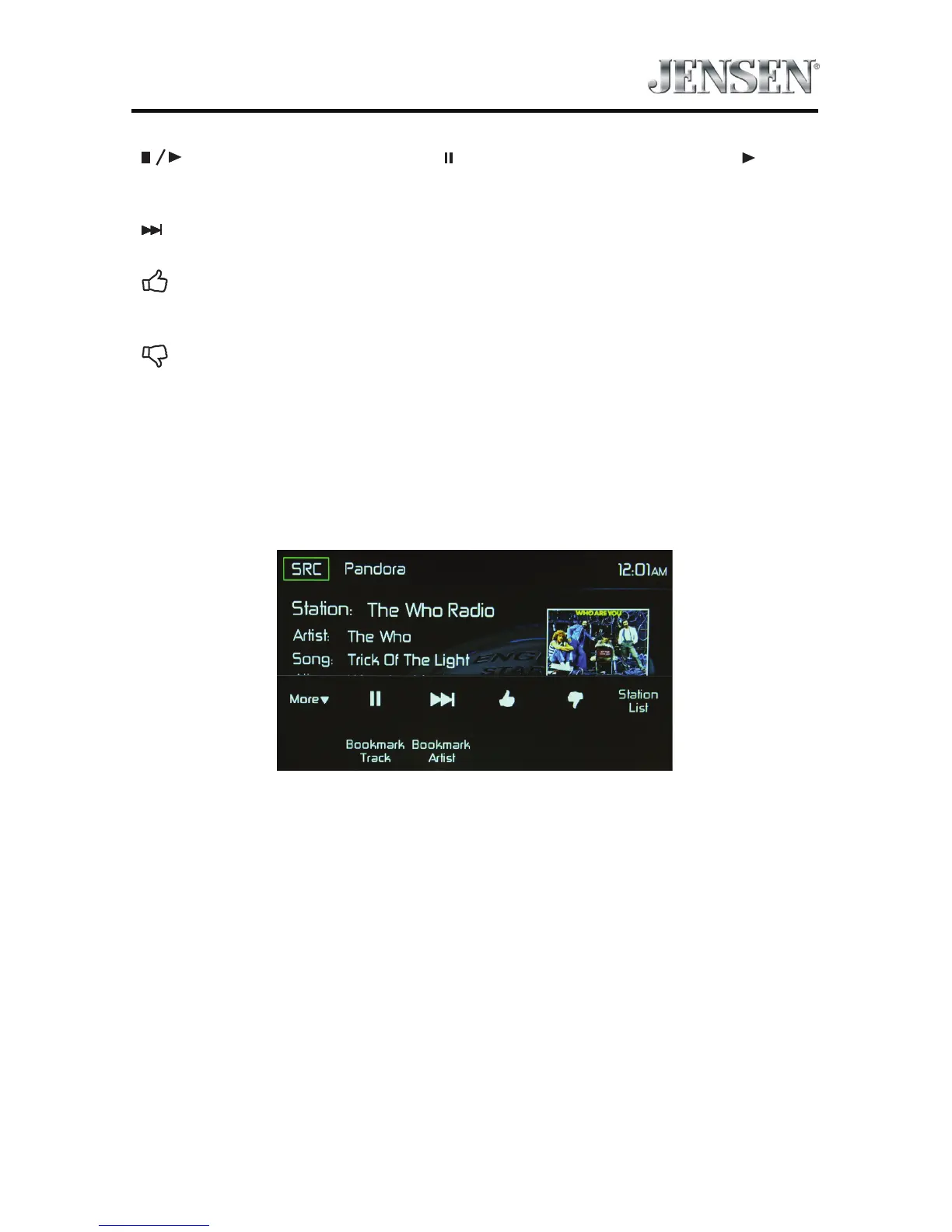 ( ) Thumbs Up - Press thumbs up to tell Pandora you like the track currently
