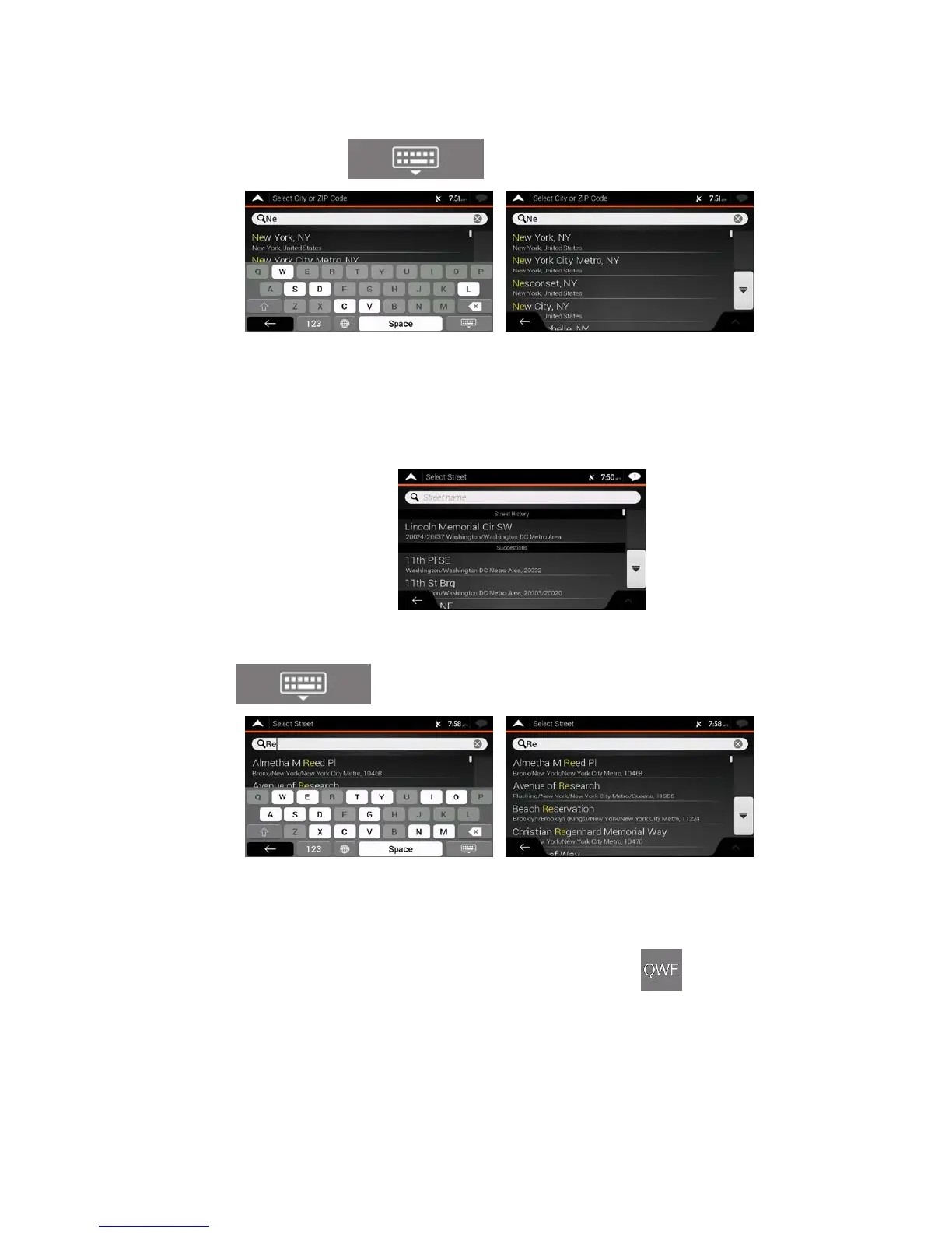 b. (optional) On the Select Street screen, you can immediately select a street from the list of