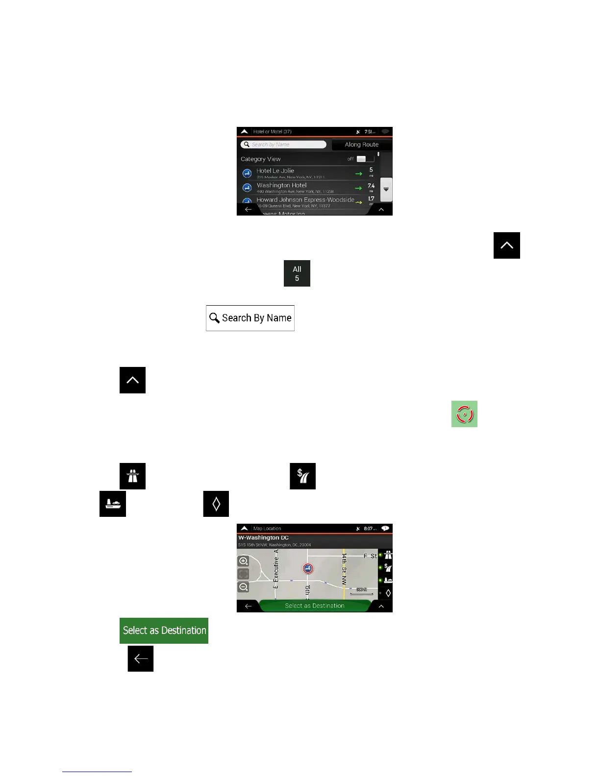 8. If necessary, tap the map somewhere else to modify the destination. The cursor (