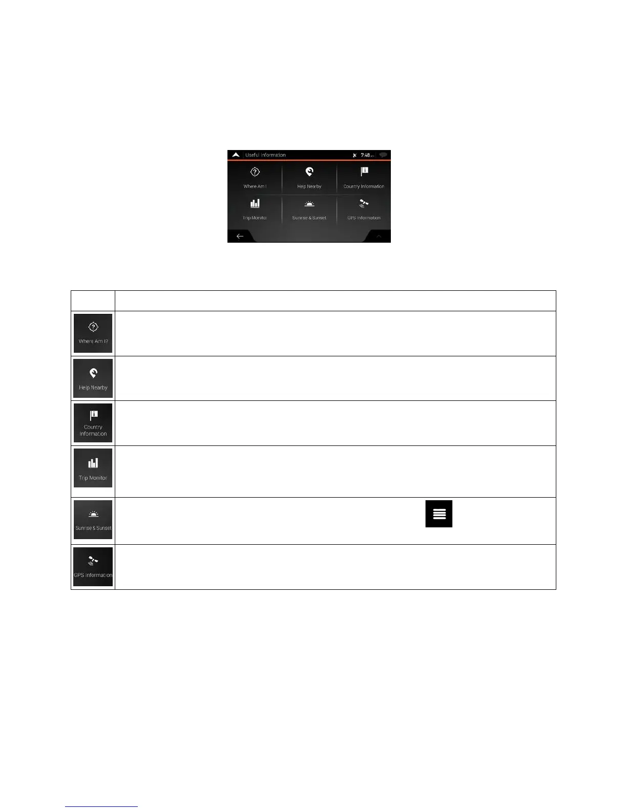 seful Information menu provides various additional functions. It can be found in the Navigation