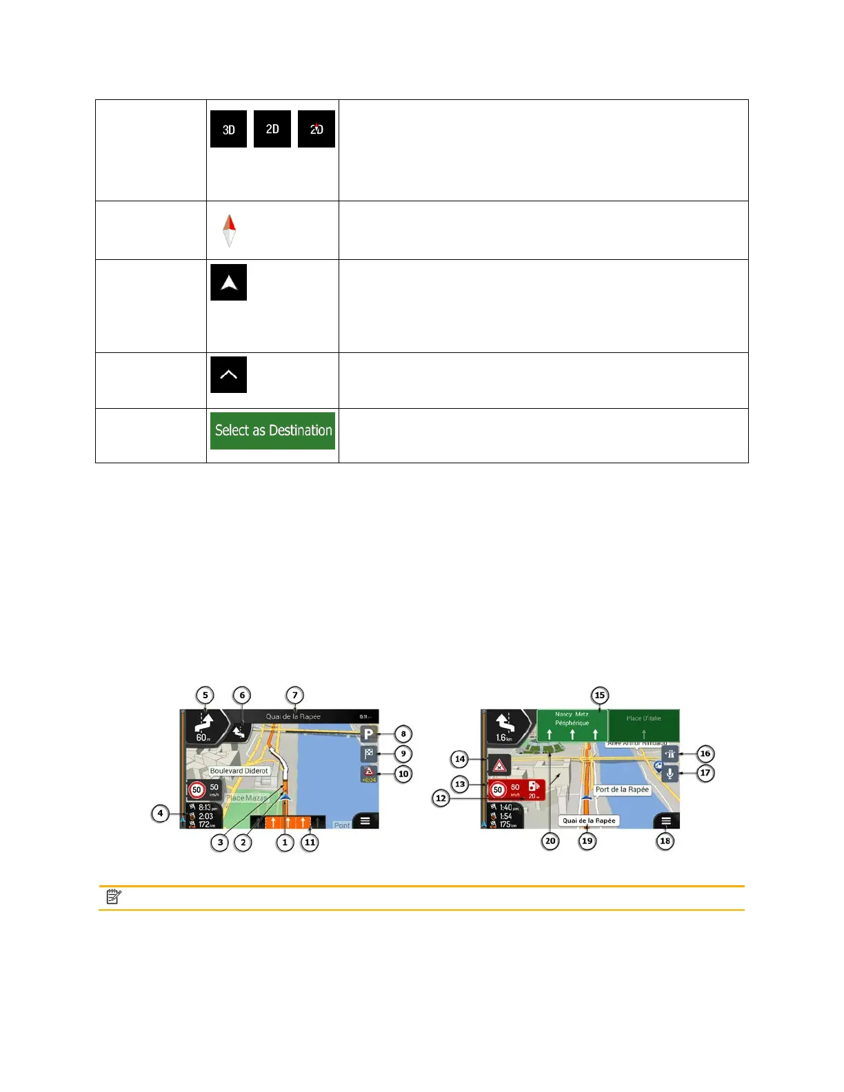 The Navigation View is the main screen that shows the planned route on a map. The navigation system