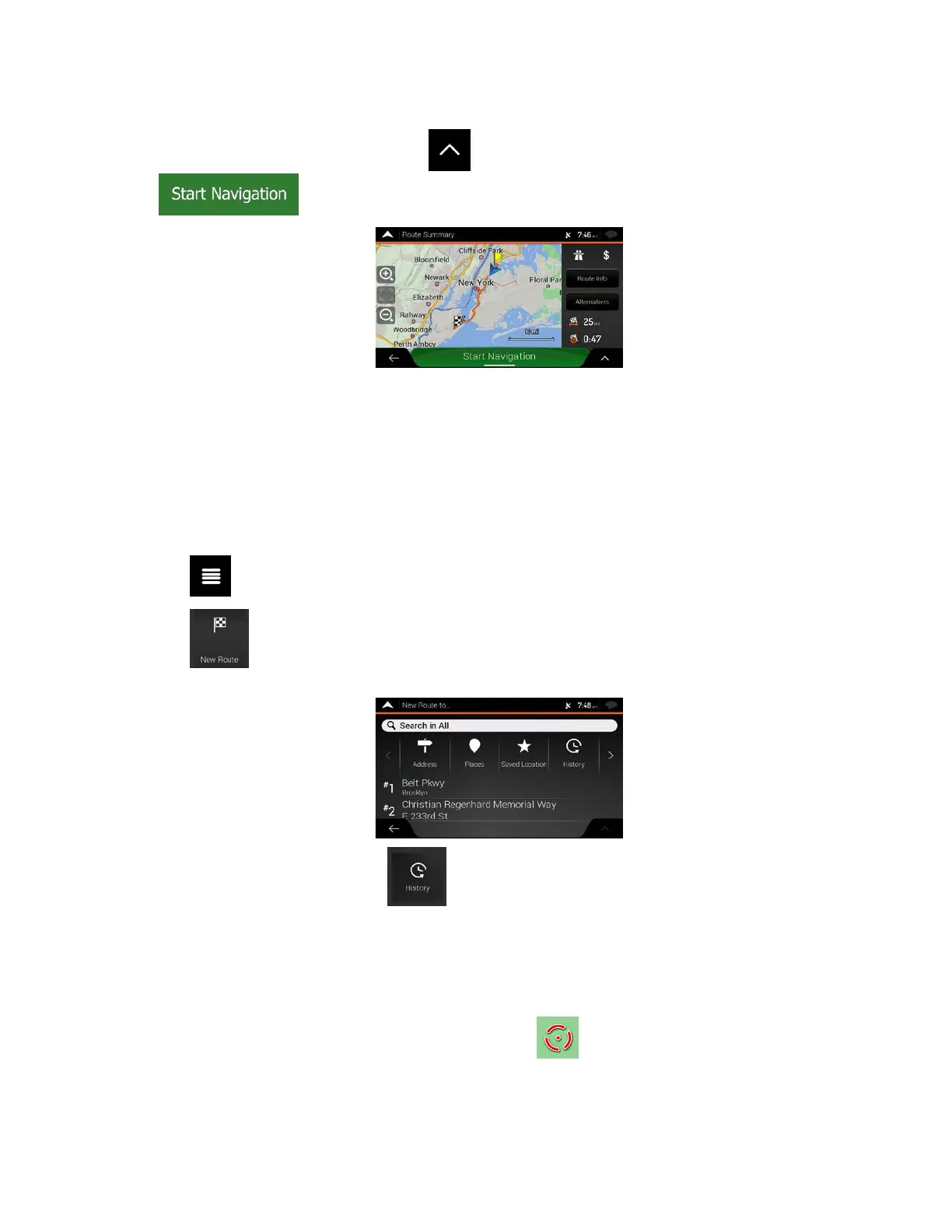 . Two of the Smart History Items are displayed in the New Route to... screen for easy