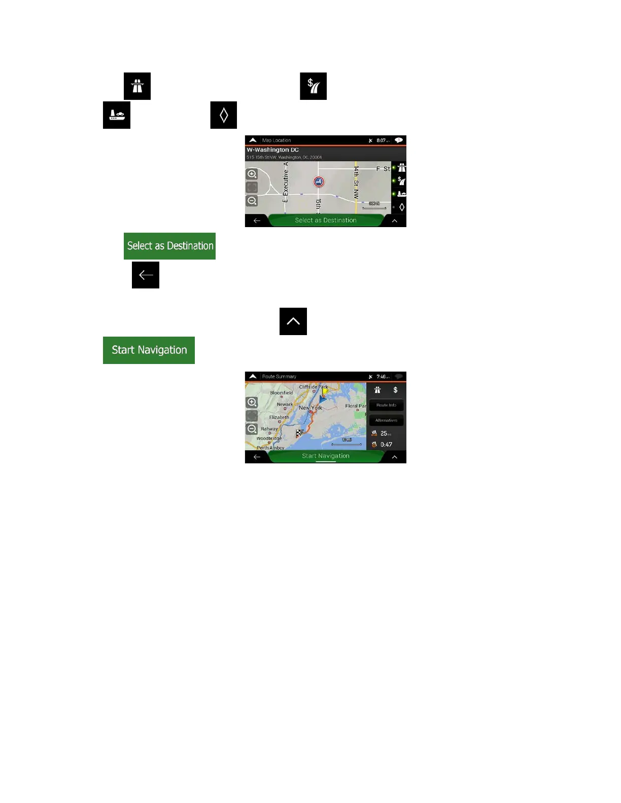 Tap to enable or avoid freeways, tap for roads with Period Charge or Per-use Toll, tap