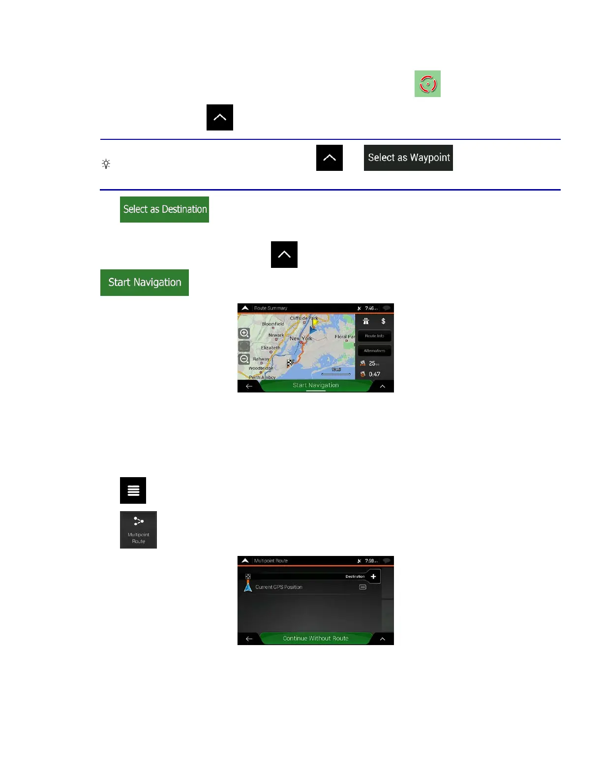 2. Tap the location that you want to select as your destination. The cursor ( ) appears there.