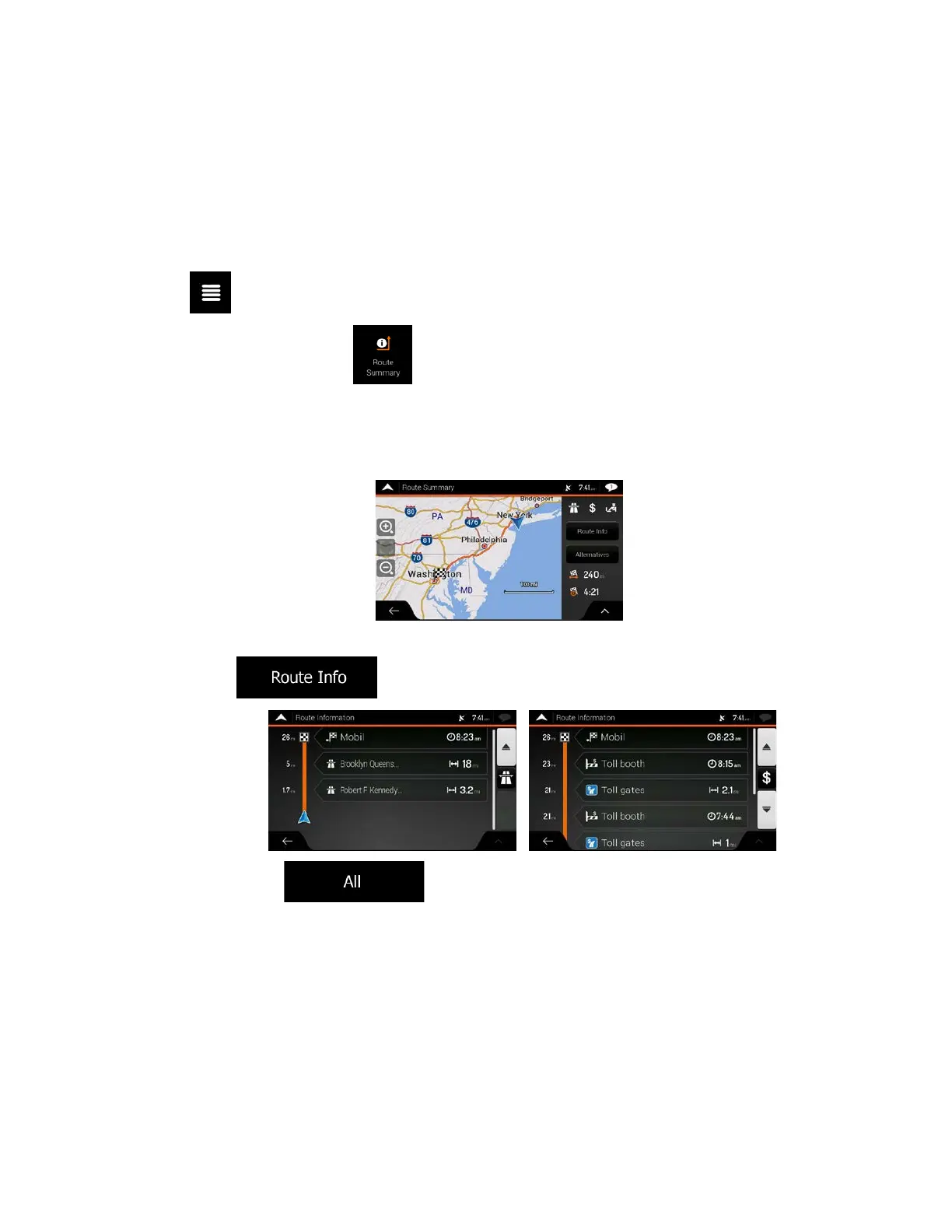 information, for example to show only freeway sections or toll roads.