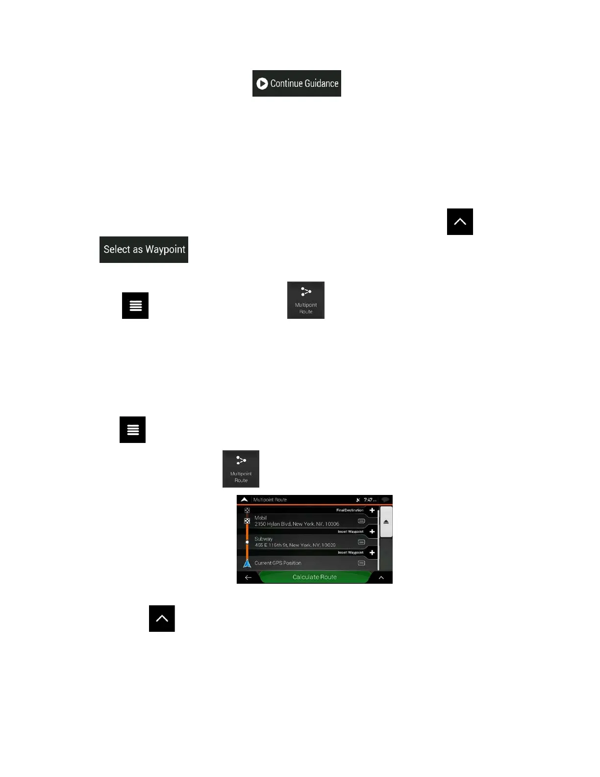 To add a new intermediate destination to the planned route, perform one of the following actions: