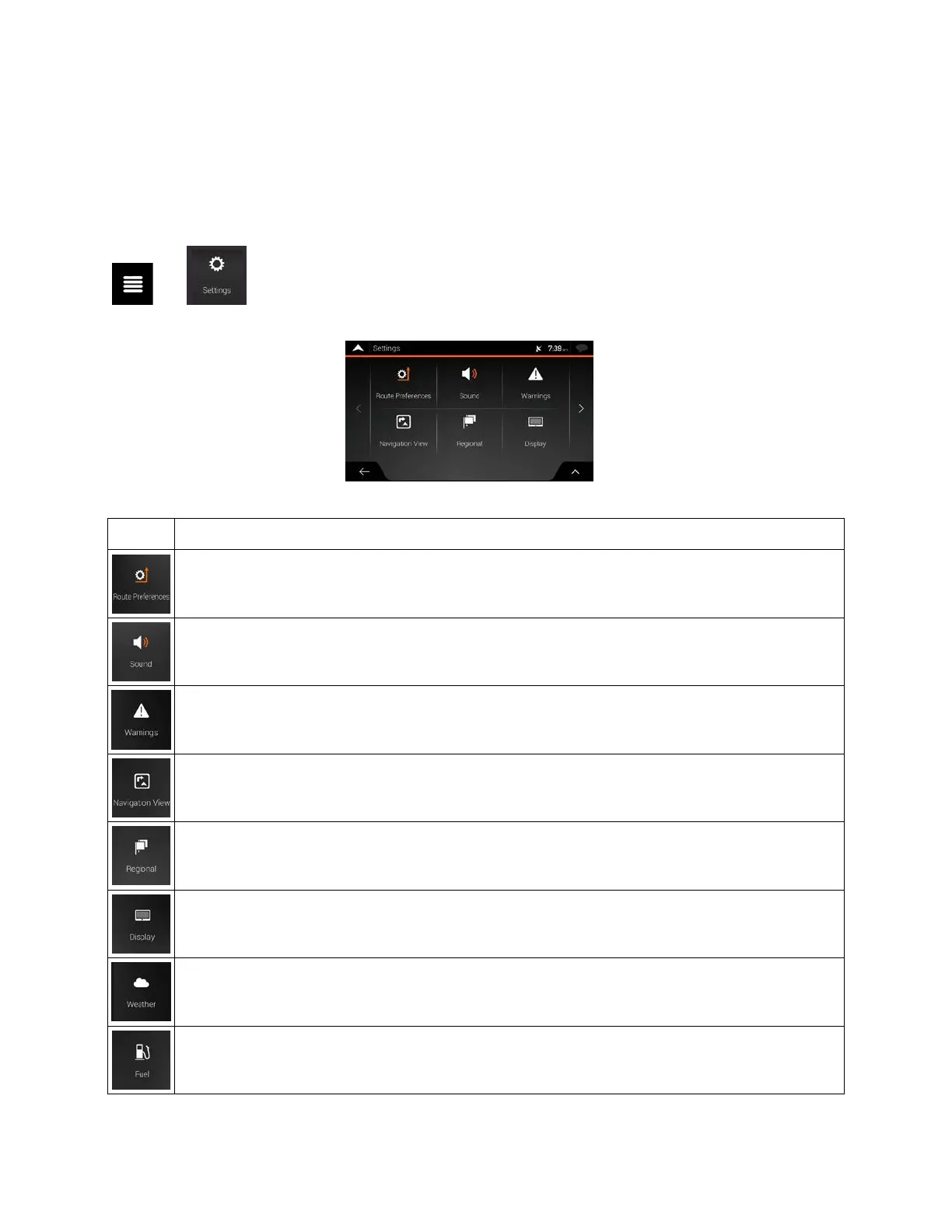 You can configure the navigation settings, and modify the behavior of the navigation system, by tapping
