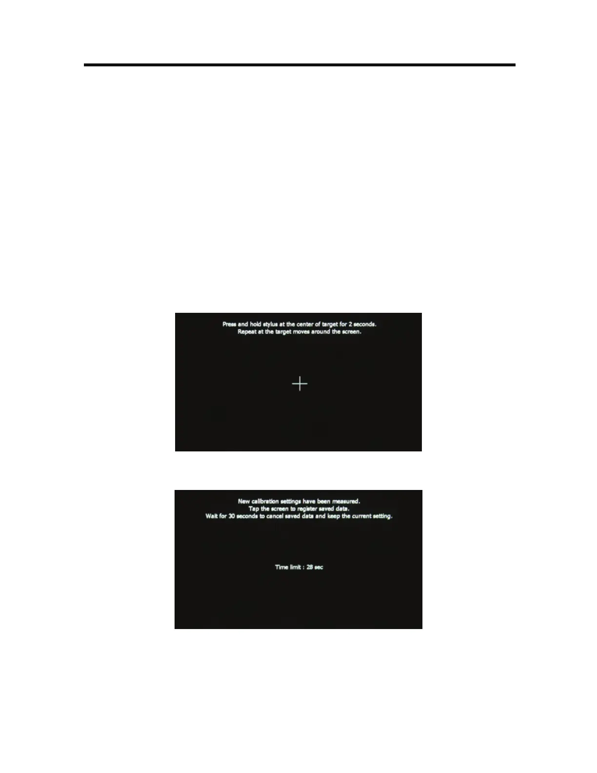 4. If the screen is touched, the new calibration parameters will be accepted. If