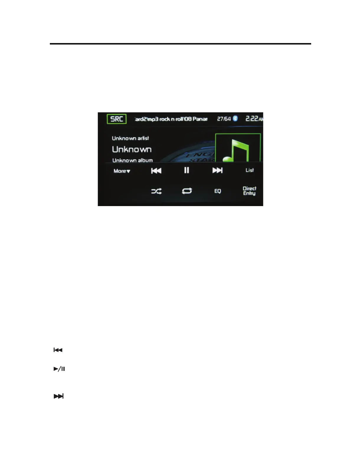( ) 1SFWJPVT - Touch this icon to play the previous track.