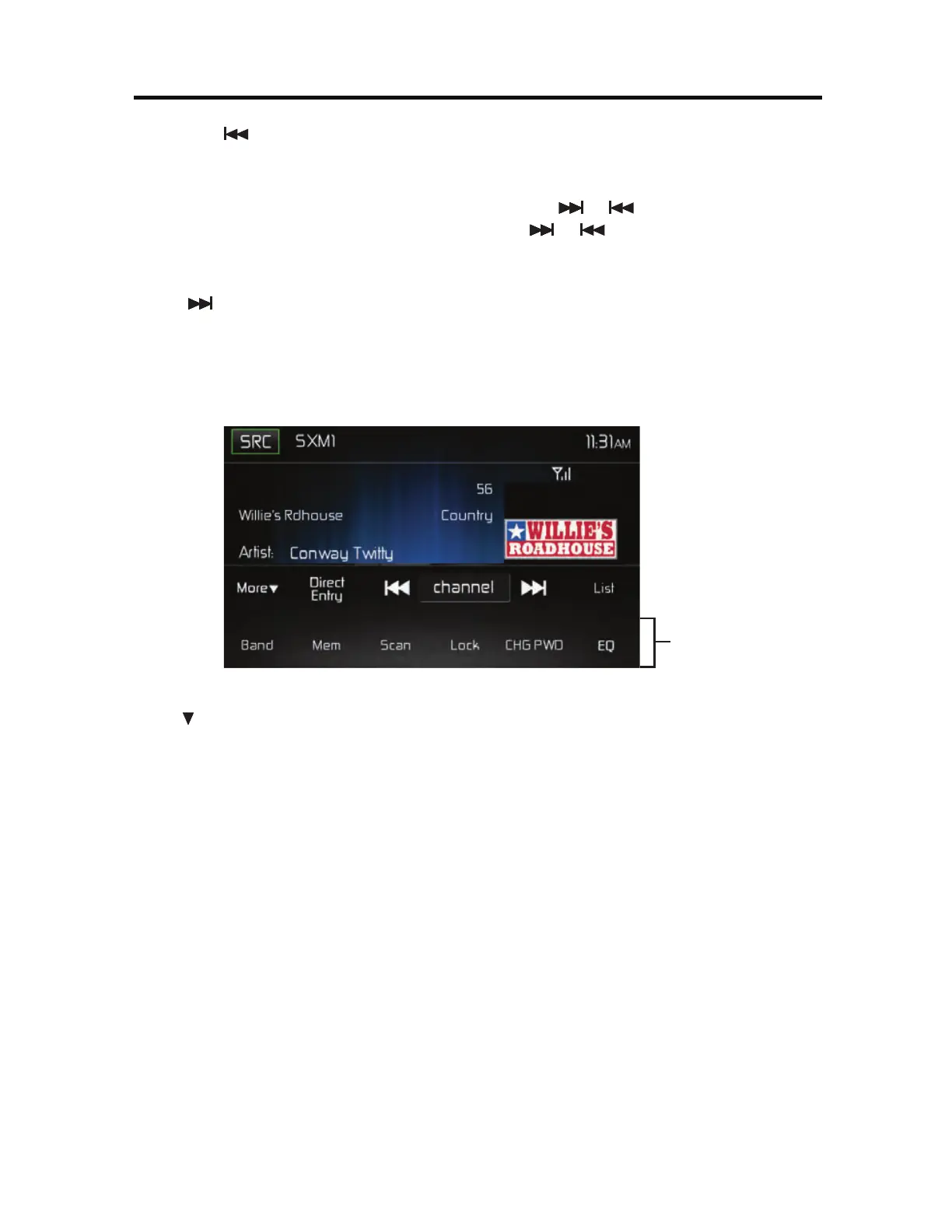 .PSF *DPO - Touch to go to SiriusXM® Menu Page 1.