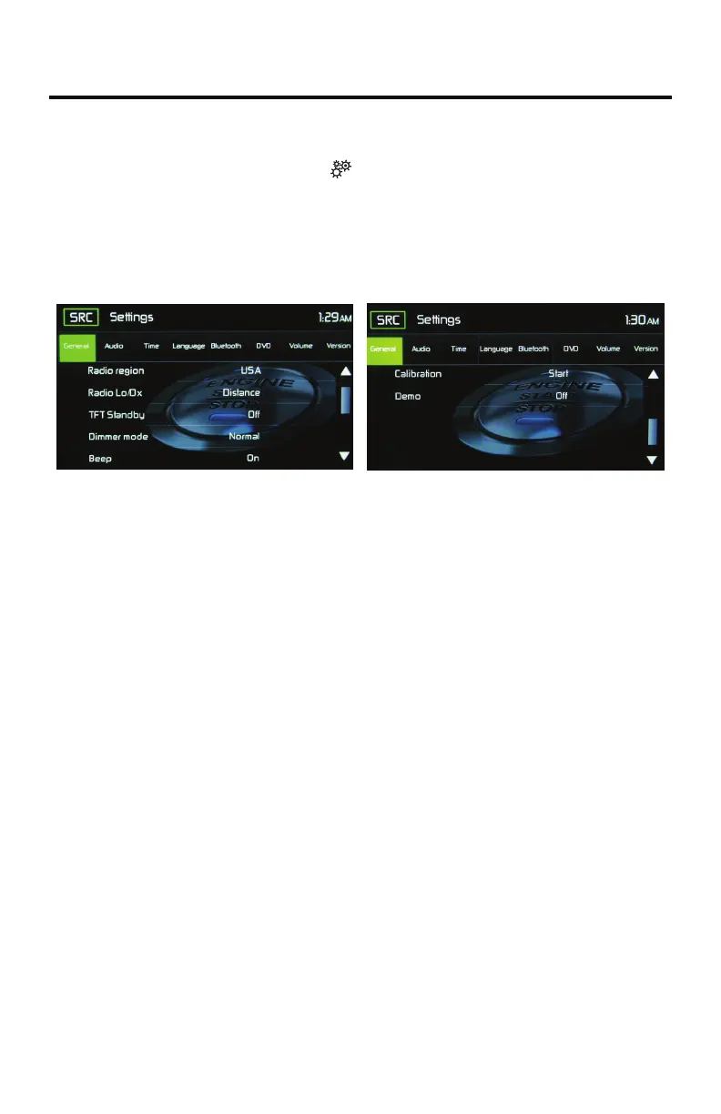 To access System Settings, touch the icon on the Main Menu screen. There are