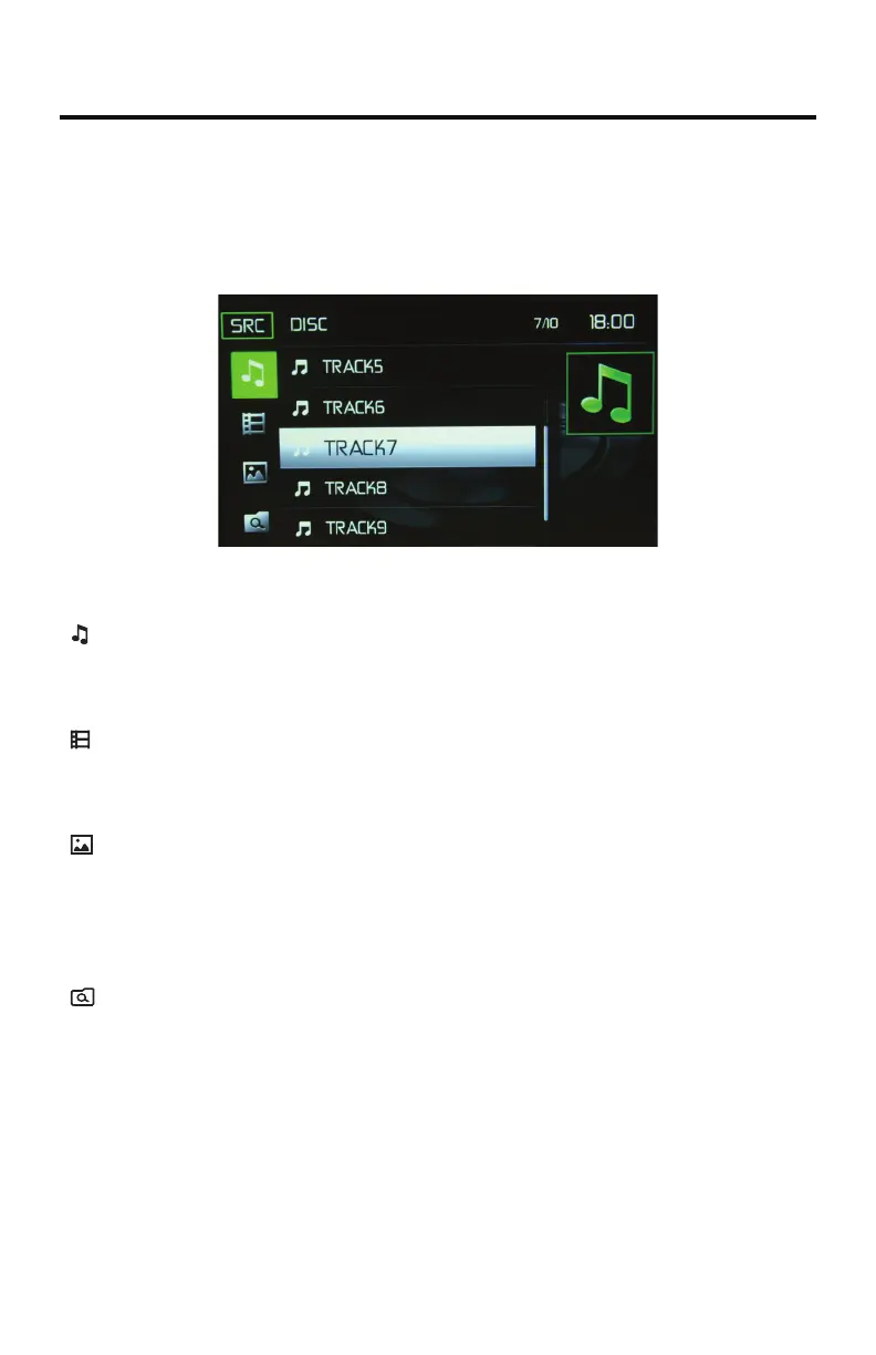 types. Touching the icon will display the files present on the disc.