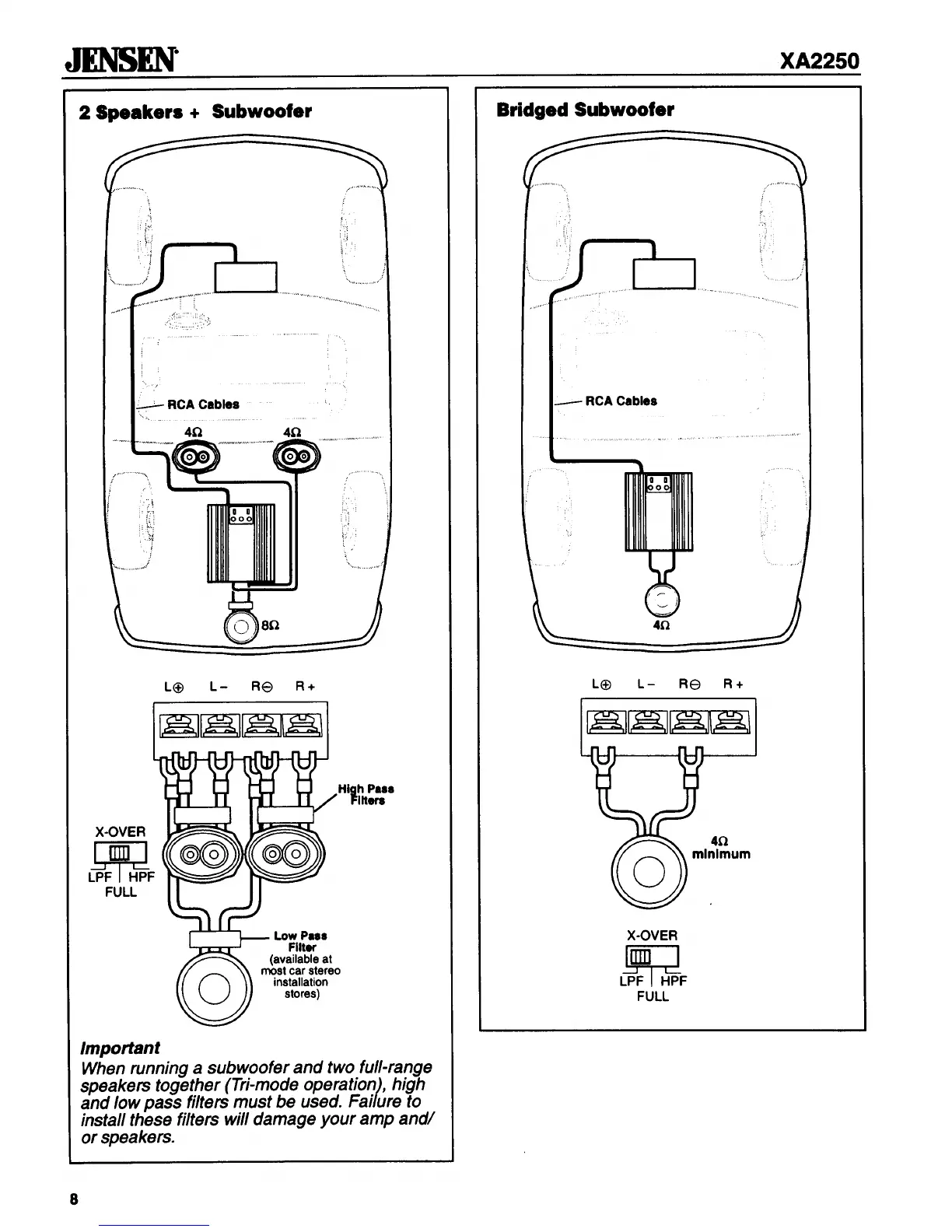 Jensen XA2250 - Speaker Configuration; Important Filter Note