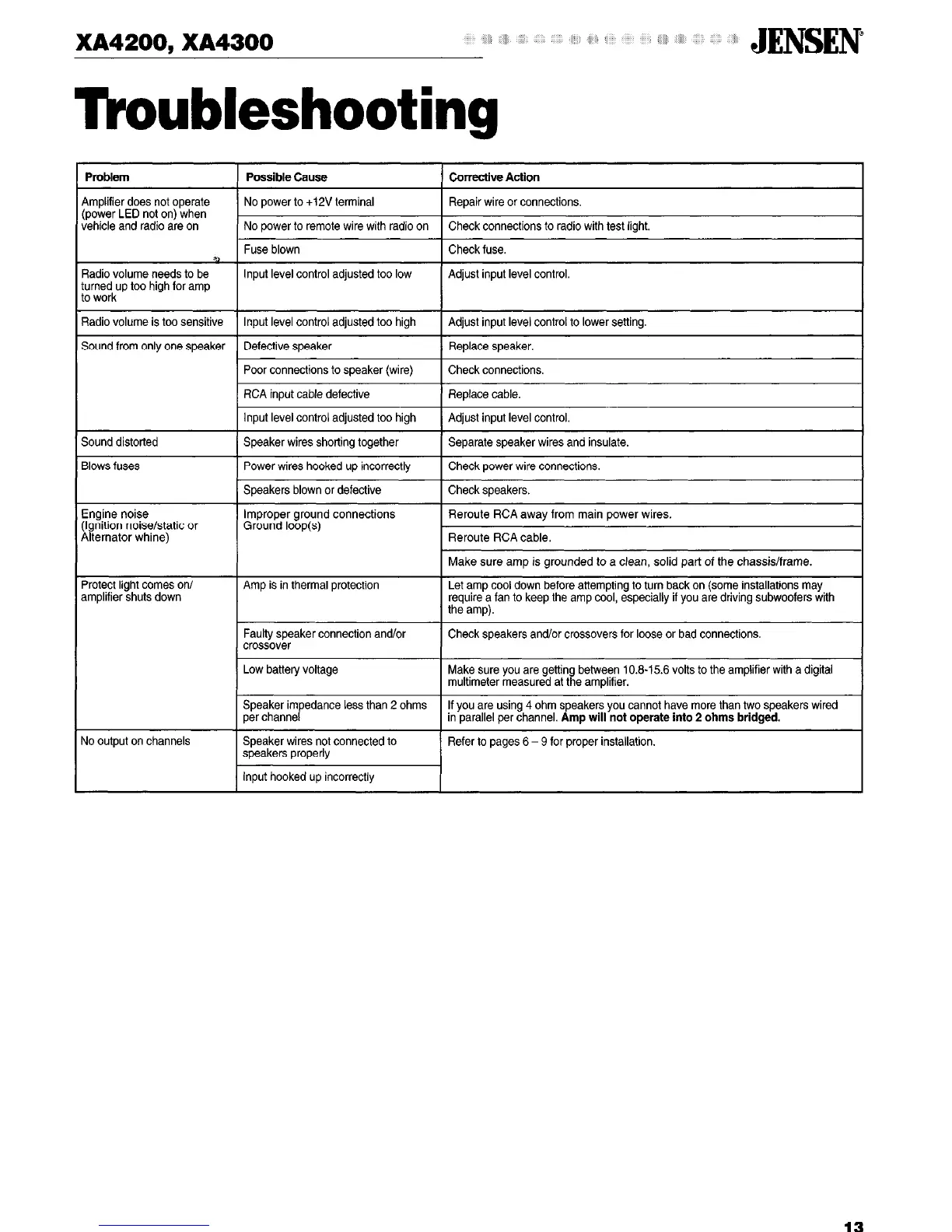 Low battery voltage Make sure you are getting between 10.8-15.6 volts to the amplifier with a digital