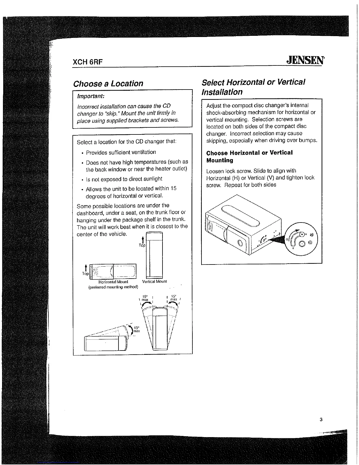 vertical mounting. Selection screws are
