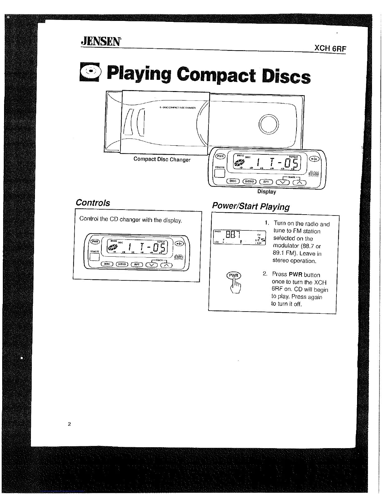 Jensen XCD 9020 - Compact Disc Changer; Controls; Playing Compact Discs; Power;Start Playing