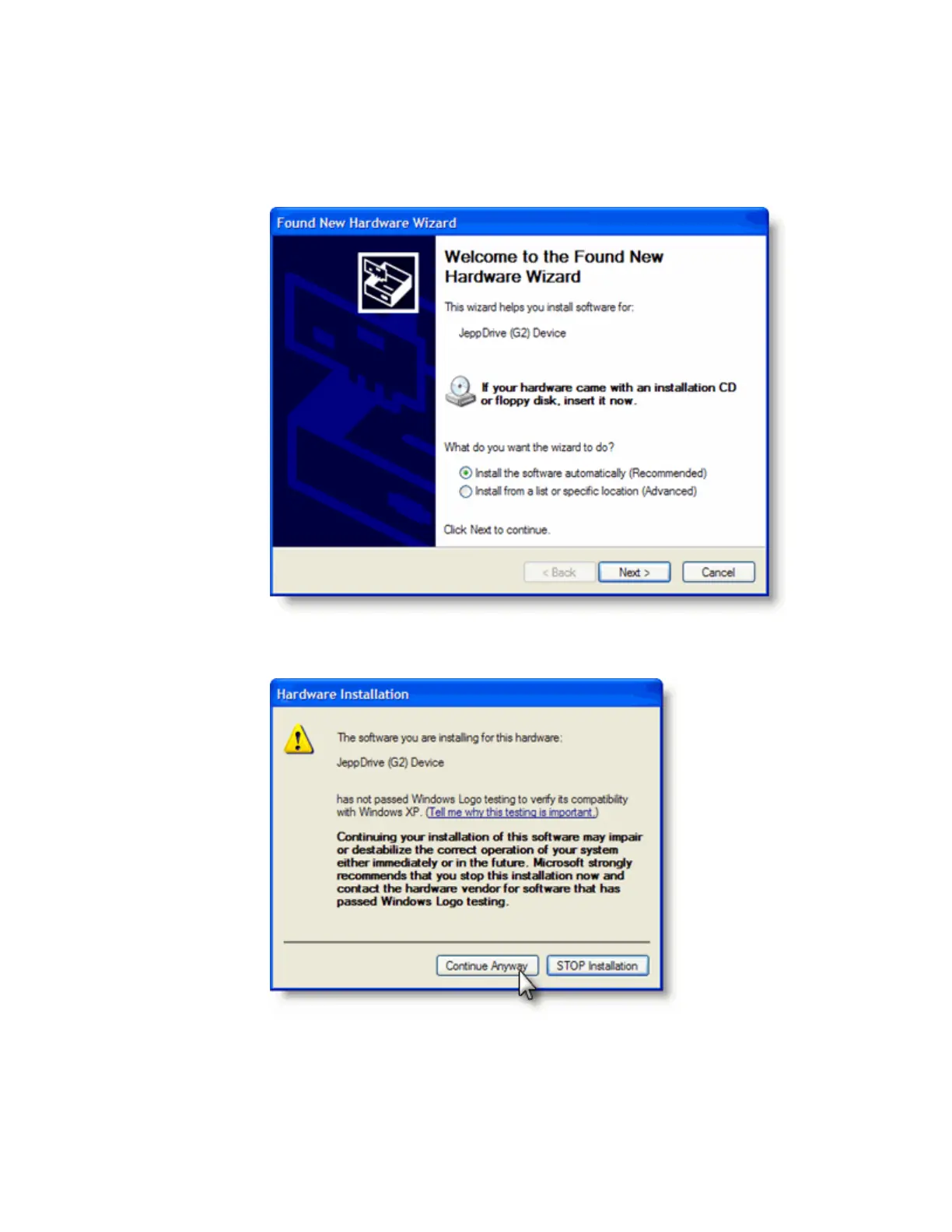 C. The Hardware Wizard begins the installation. When the Hardware Installation