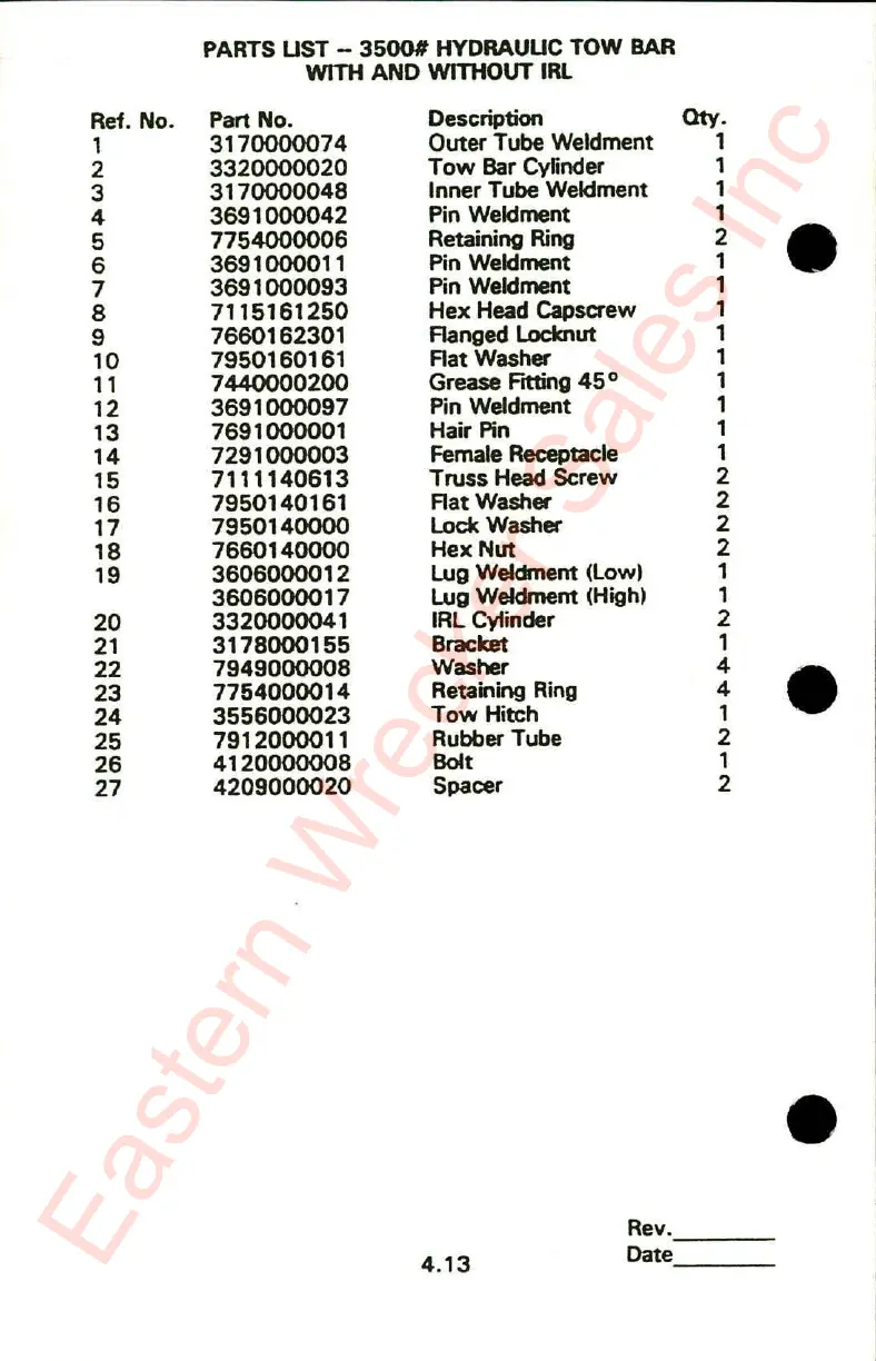 PARTS UST - 3500# HYDRAUUC TOW BAR