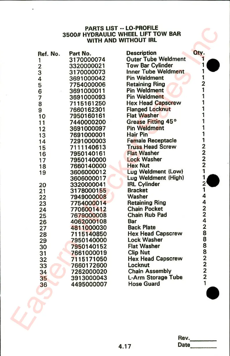 Jerr-Dan LIGHT DUTY - IRL Cylinder; Hydraulic Wheellift Towbar (ZOO)