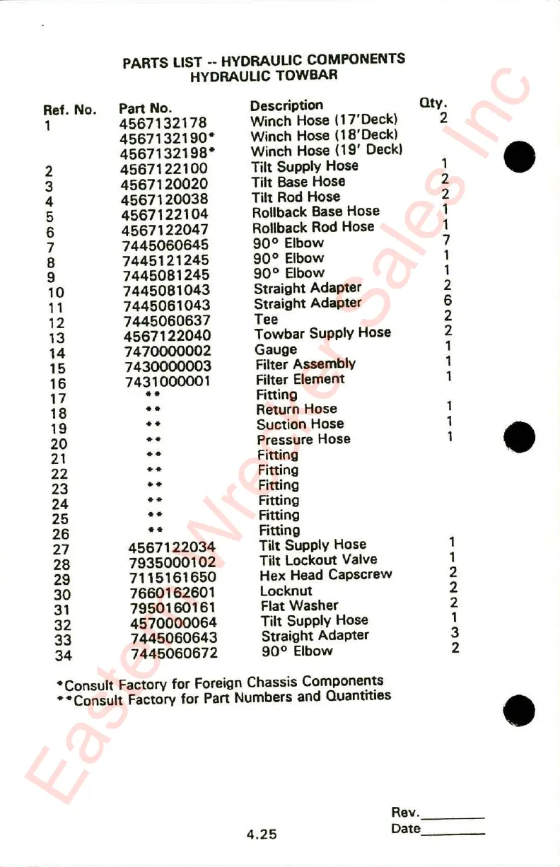 PARTS LIST .- HYDRAULIC COMPONENTS