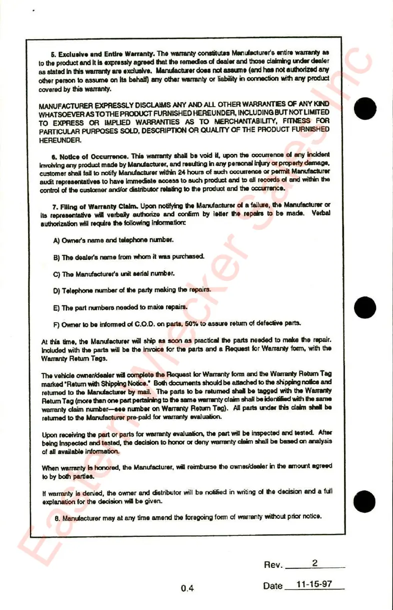 5. EKlu8lv. and EntIN Warnntr. The wam.nt)' eonsaitutN MWIl,acturer' • .,t1re""""" lIS