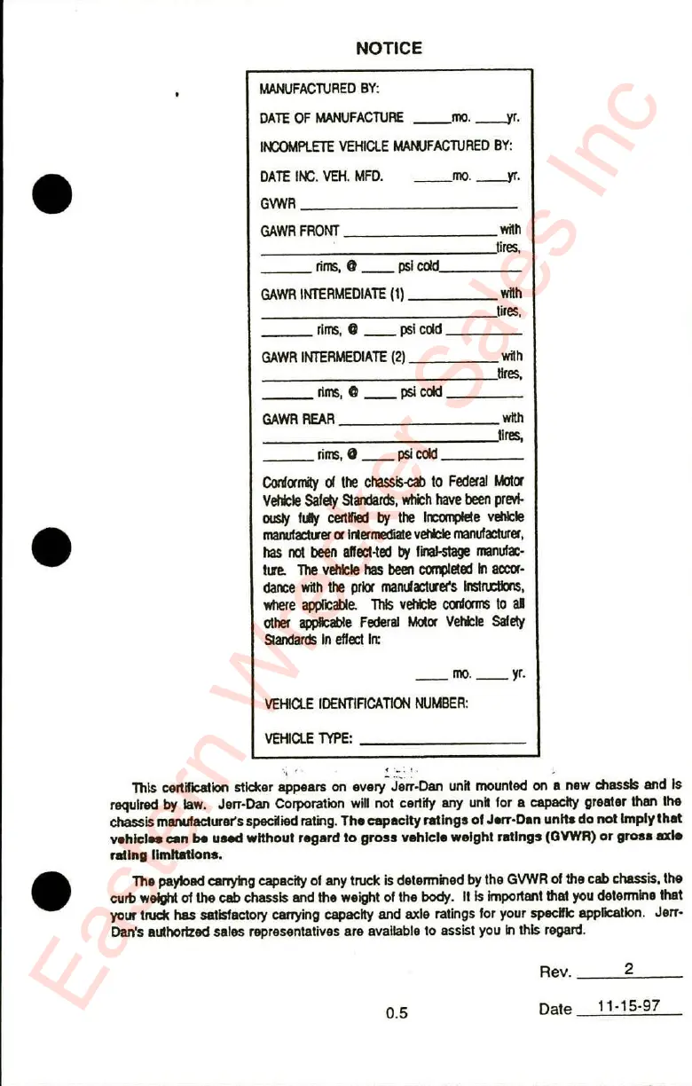chassis manufacl •• er's specified rating. The capacity ratings of Jerr-Oan