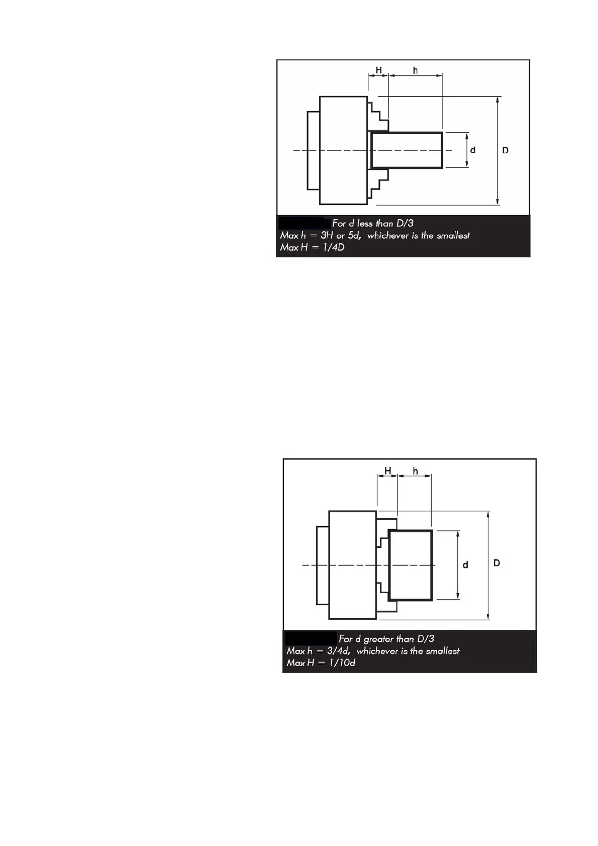 chuck jaws. As a general guide, for workpieces up