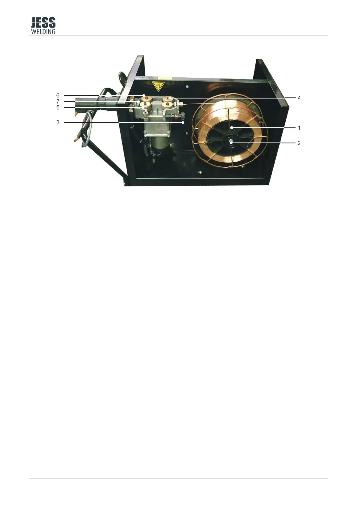 - lower wire-feed rollers (6) with V-shaped groove matching the wire diameter used