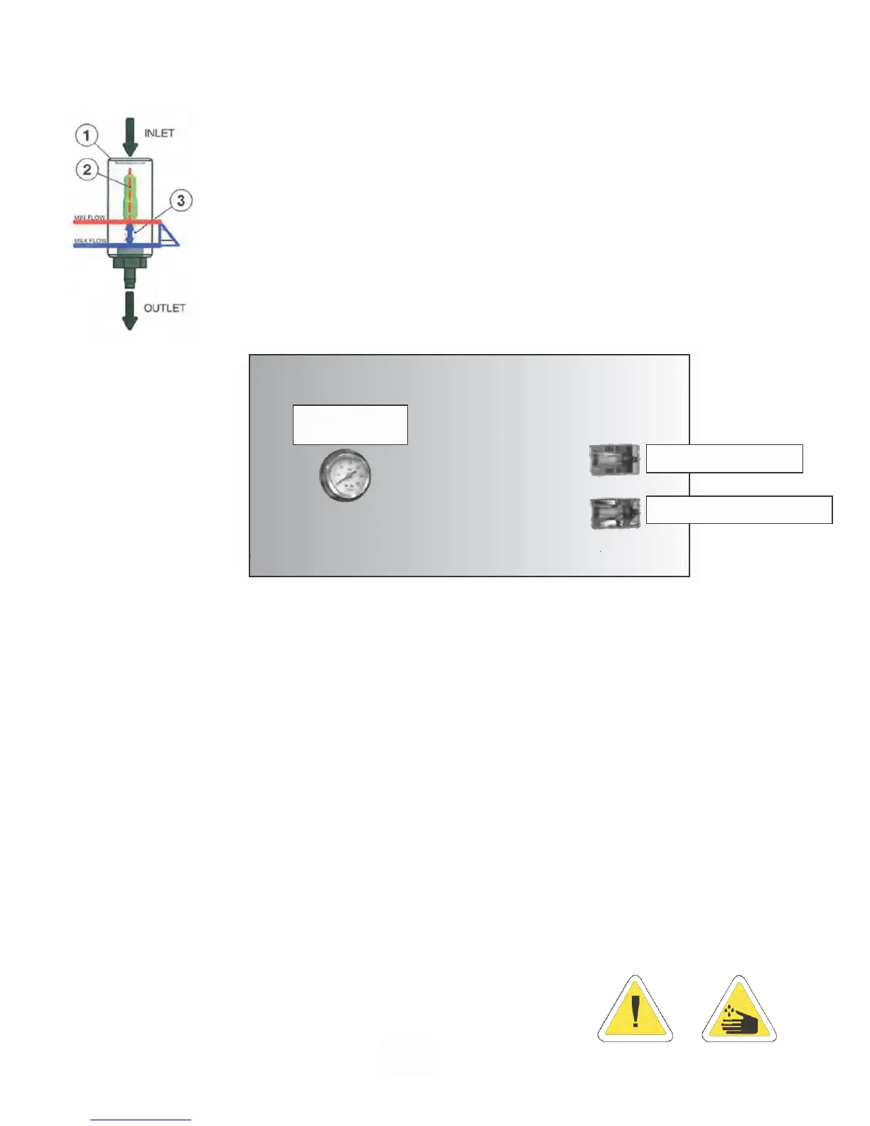 time, the flow indicator (2) will move between the “Min Flow” position and the