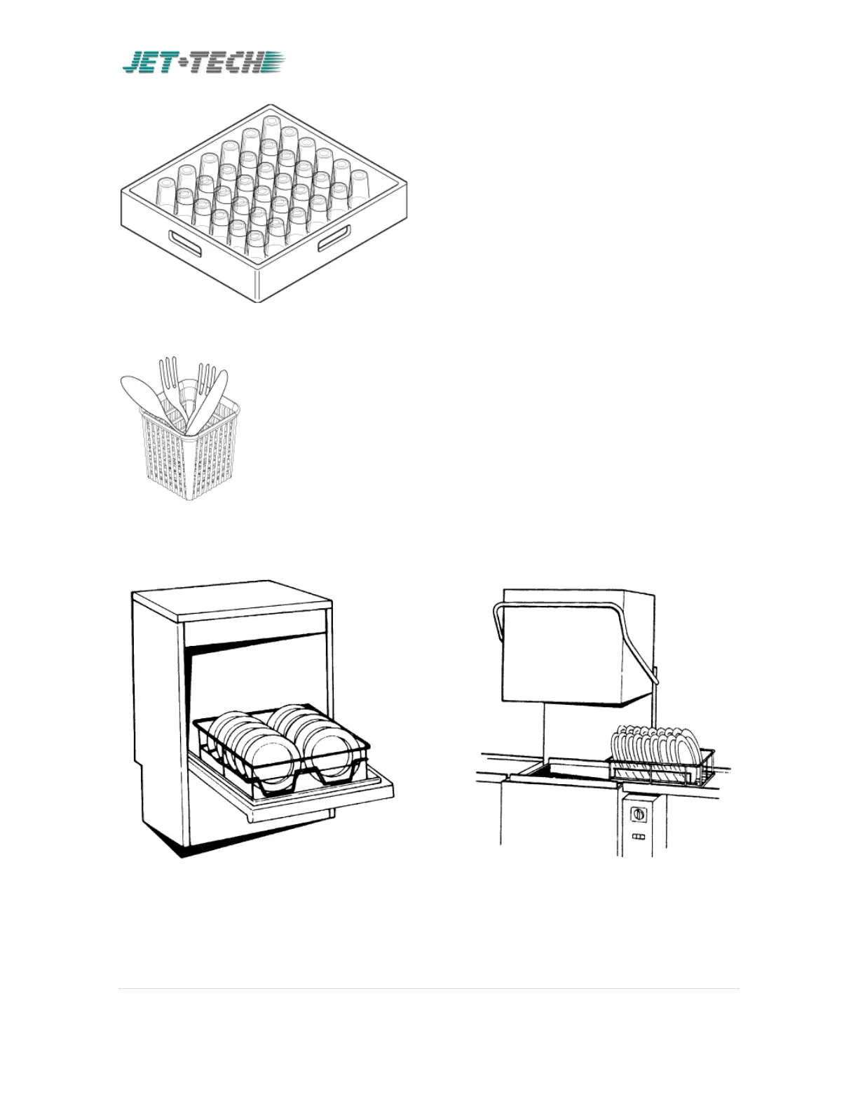 4- Load dish rack in machine with dishes as described on the figure. For hood-type models load the rack