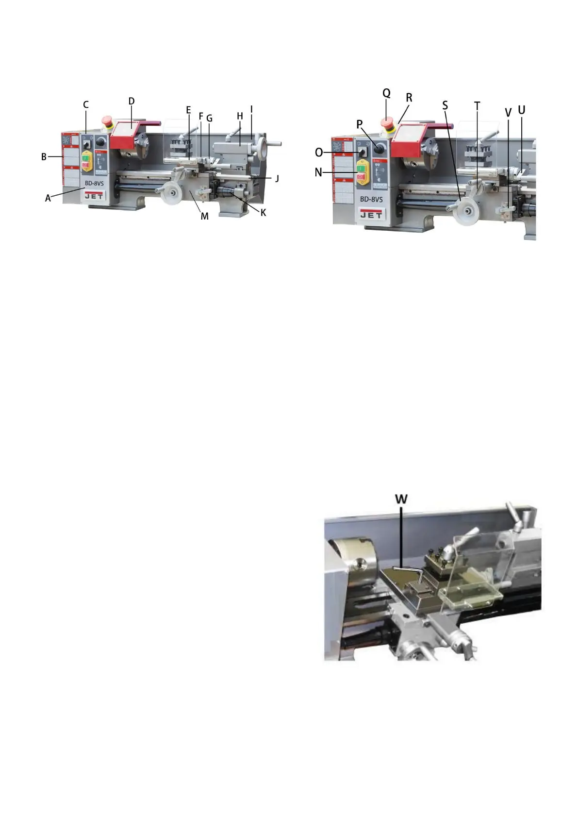 W ..................................... Top slide taper adjustment