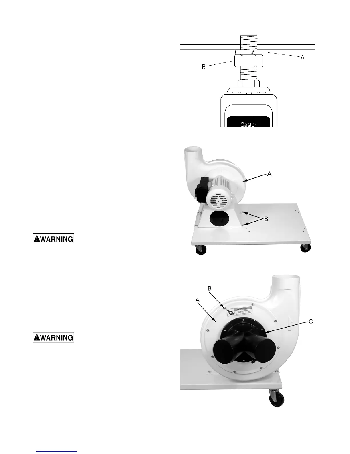2. Thread the hex nut (B, Fig. 1) onto the caster