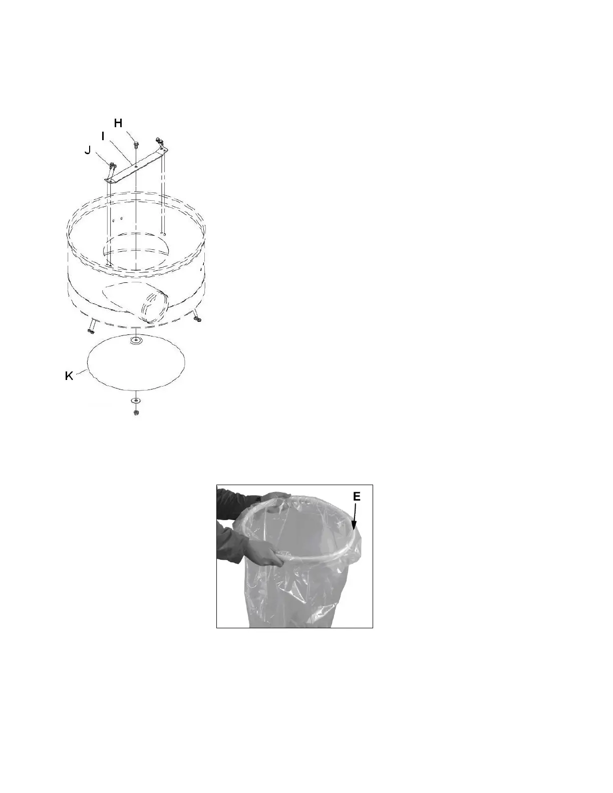 Rabattre le sac sur l’anneau de maintien (E, Fig 9).