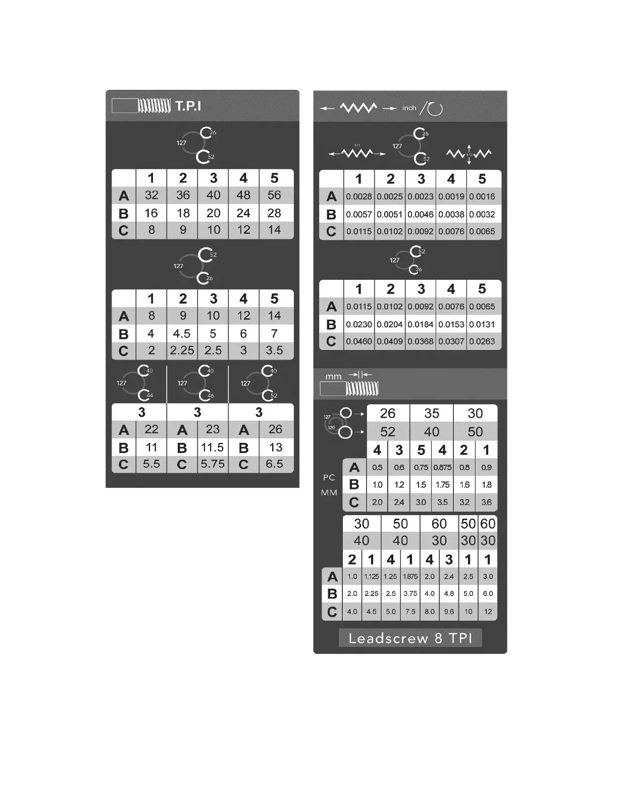 Jet EVS-1440B - 13 Thread and Feed Chart