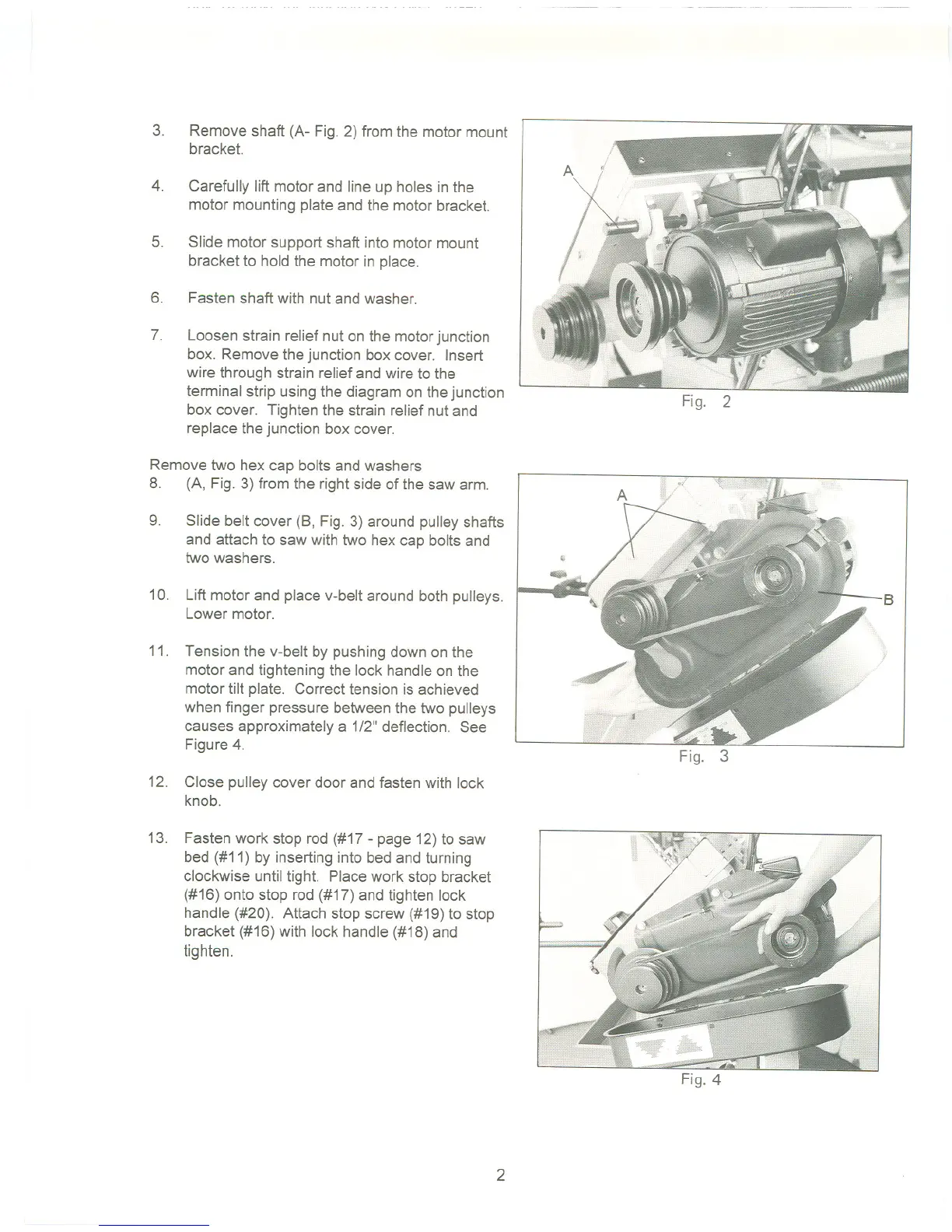Slide belt cover (8, Fig. 3) around pulley shafts