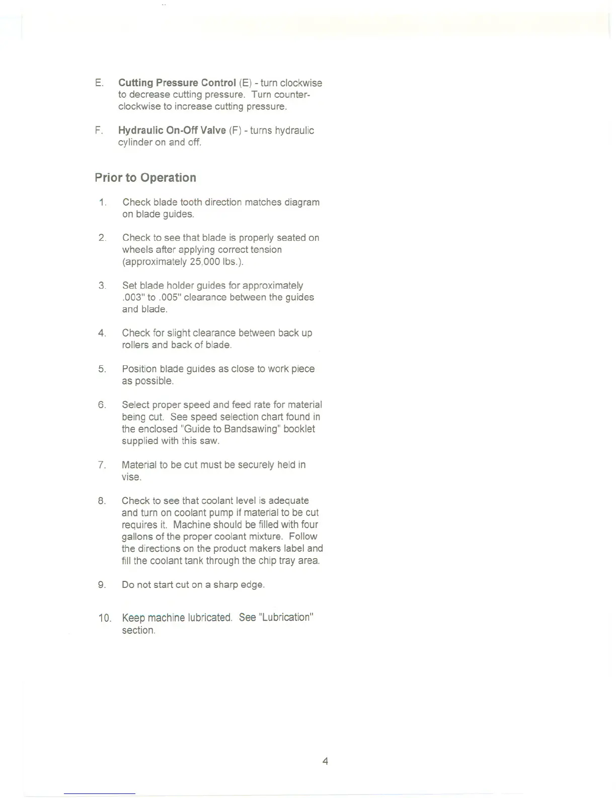 10. Keepmachinelubricated. See "Lubrication"