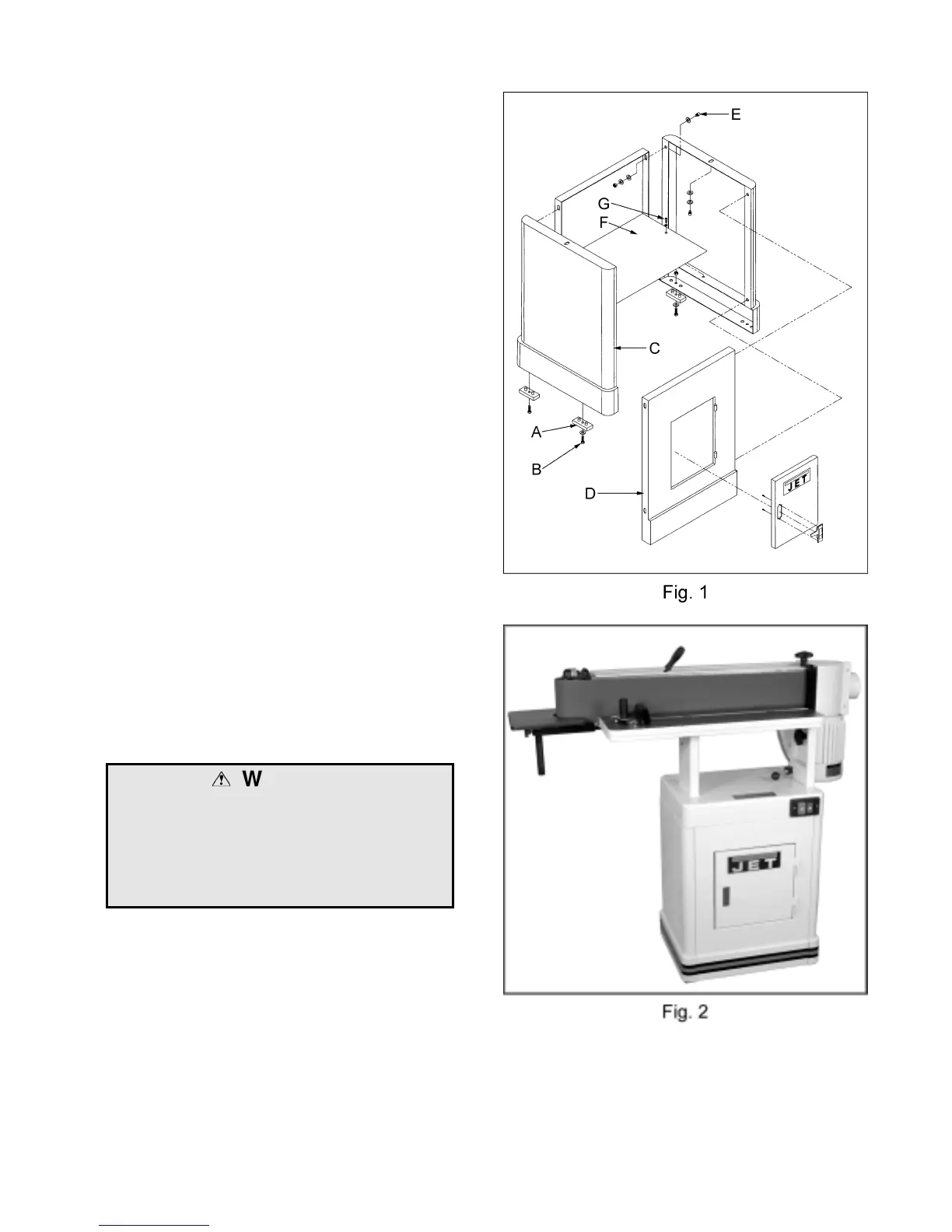 5. Mount the shelf (F, Fig. 1) to the inside of