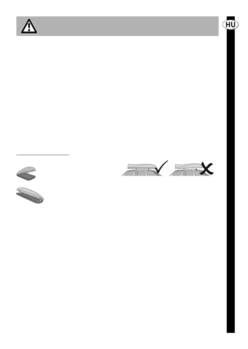 Kérjük ügyeljen az alábbiakra a tetocsomagtartó box has-
