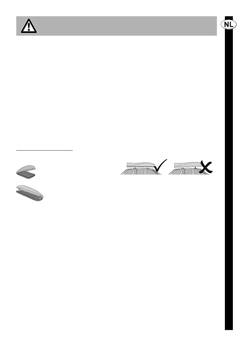 de buitenkant van de dakkoffer mogen geen verdere lasten
