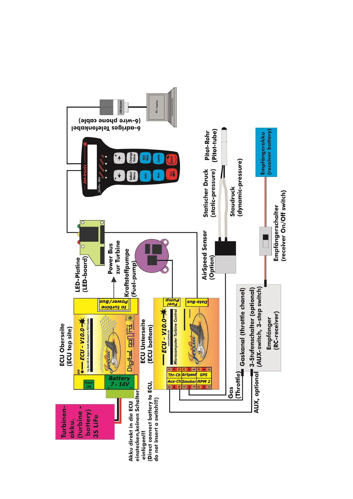 JetCat P100-RX - Turbine System Connections; Complete System Connection Diagrams