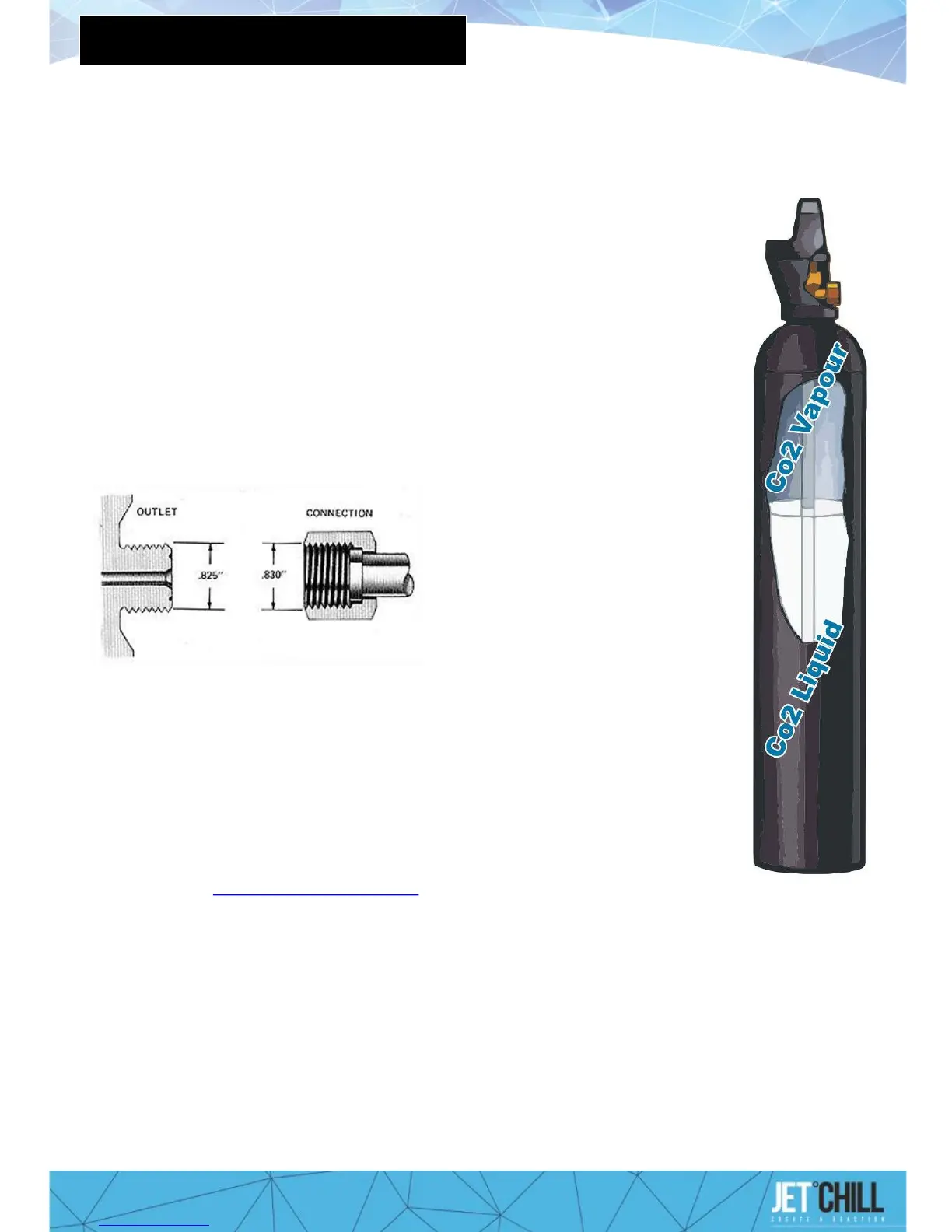 • JetChill machine connects to Co2 cylinder with a dip tube (denoted