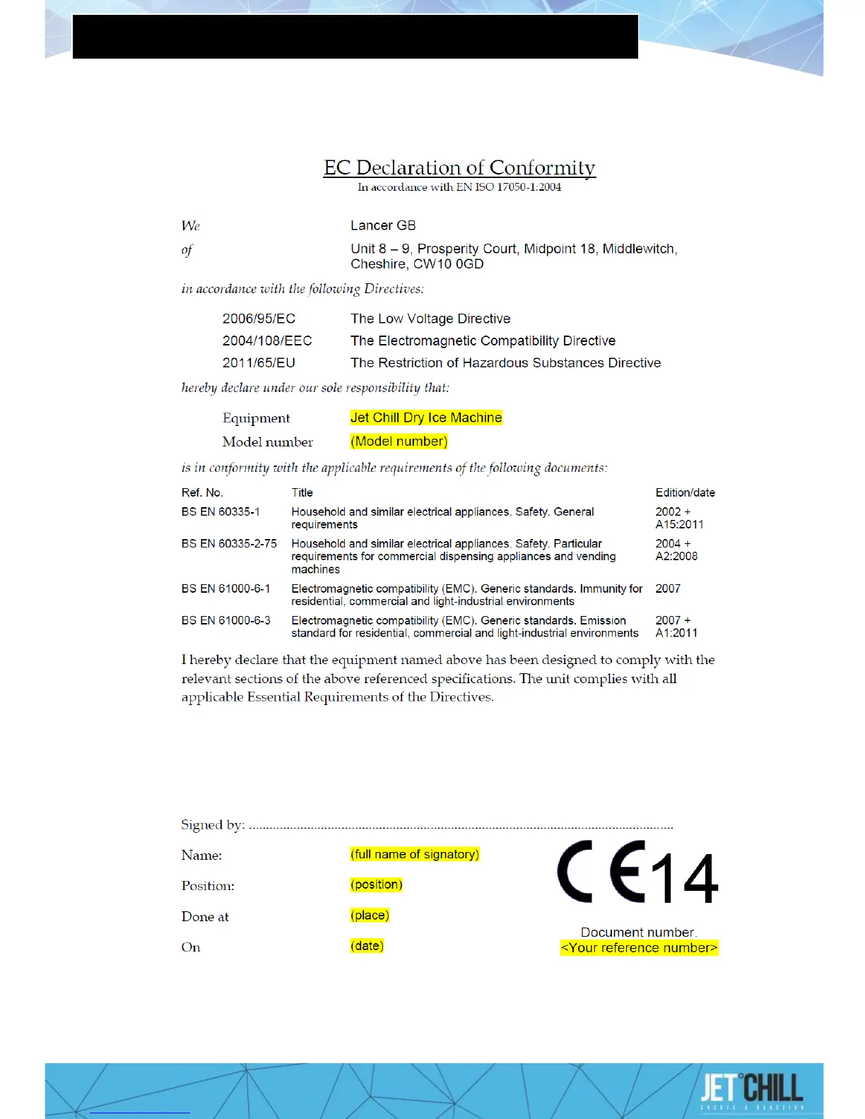 JetChill Twin Probe - APPROVAL - ELECTRICAL SAFETY (CE MARKING)